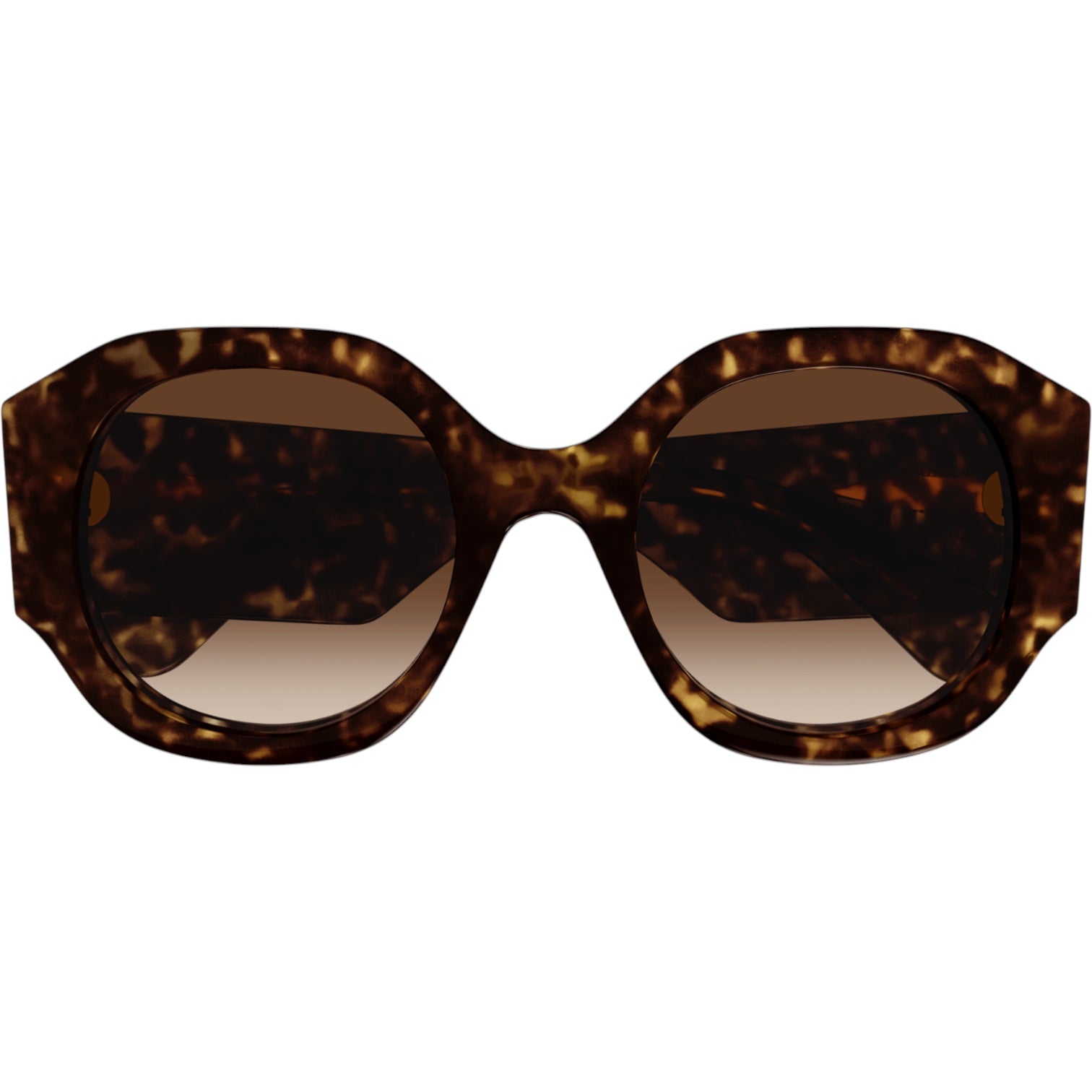 La Chloé CH0234S 003 deslumbra con su silueta audaz y ultra femenina. La montura havan oscuro, acentuada con finos detalles dorados, irradia un aire de sofisticación moderna. Su diseño geométrico suavizado aporta un toque artístico y vanguardista, perfecto para un look de lujo que no pasa desapercibido.