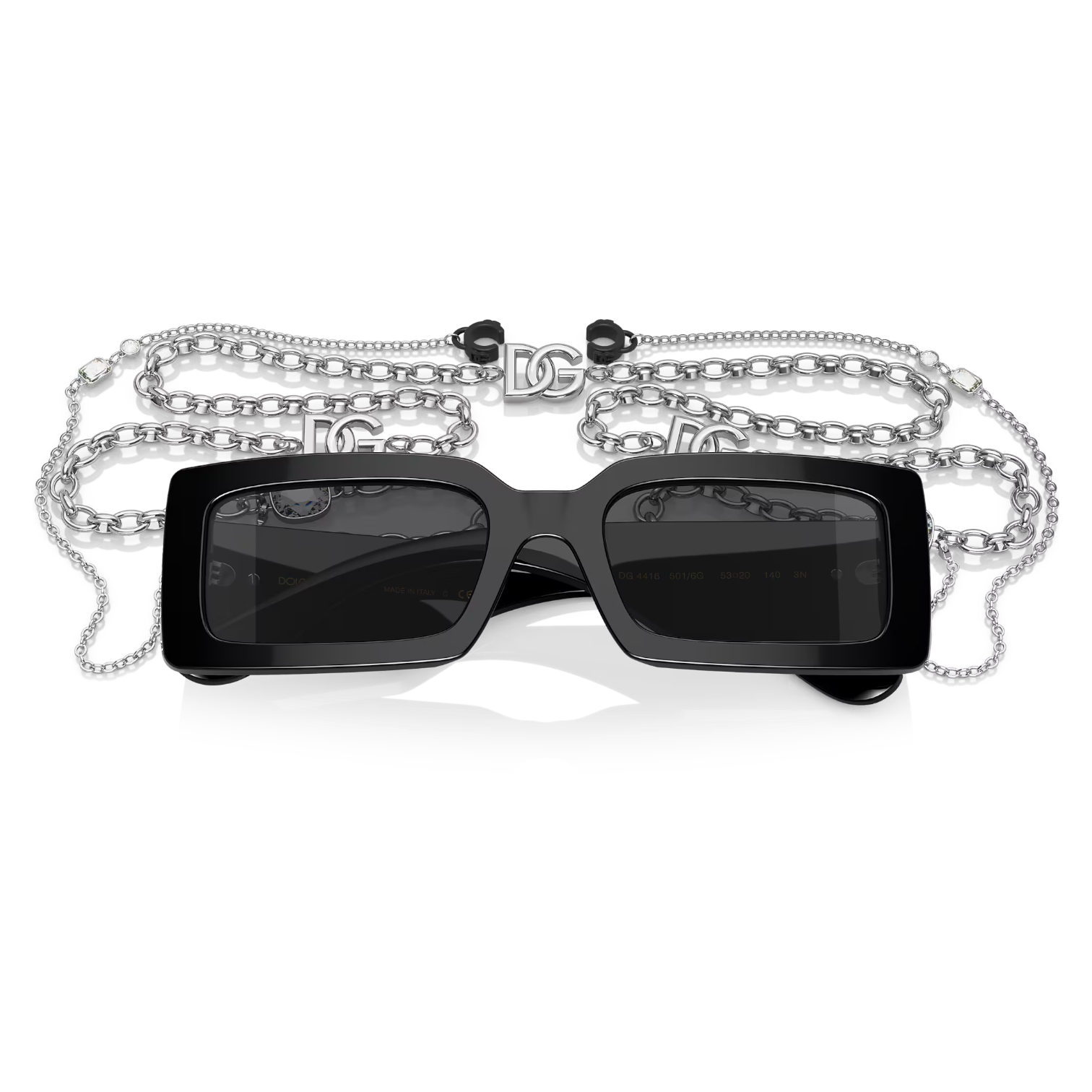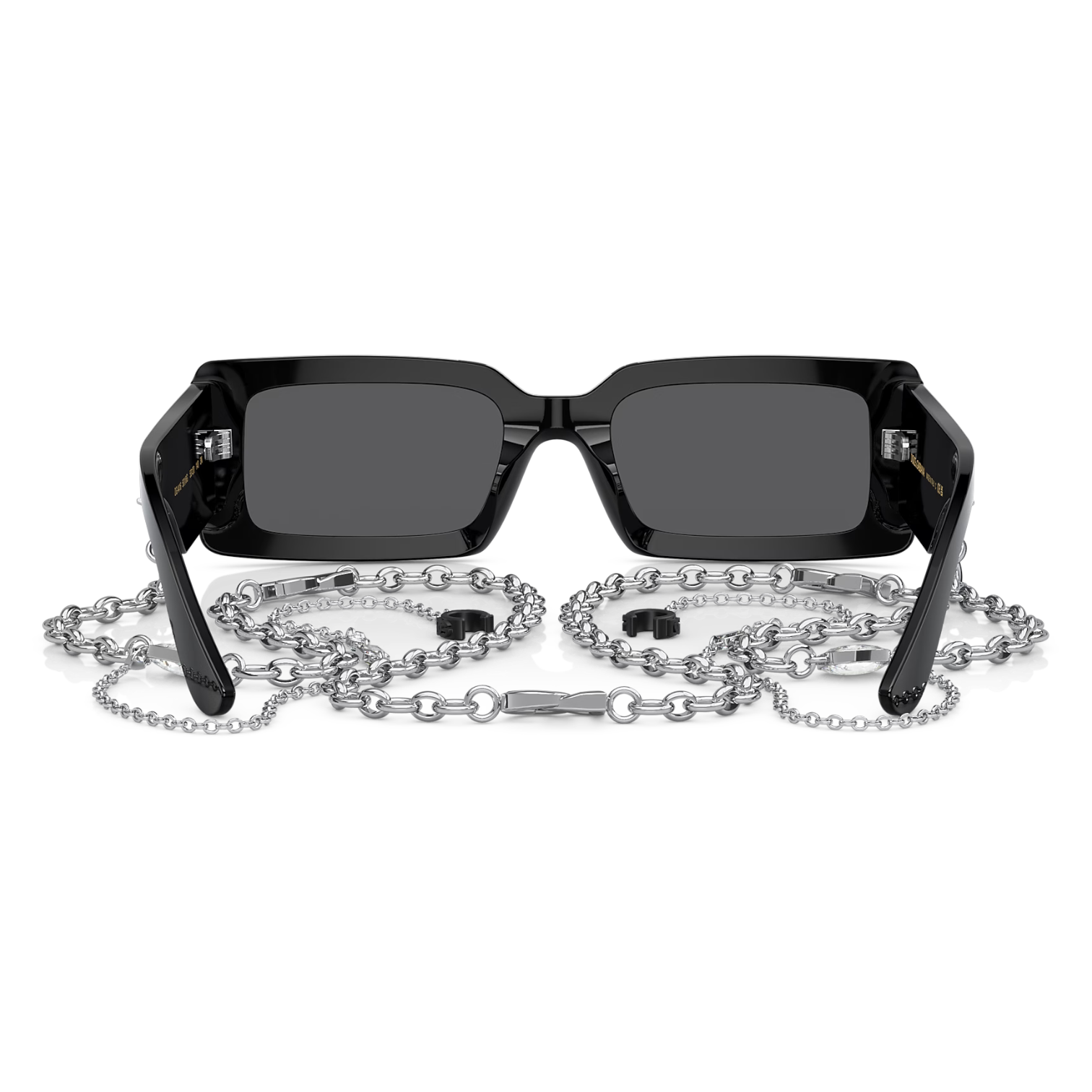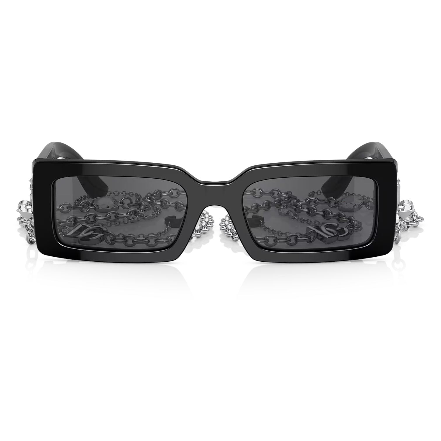 Las Dolce & Gabbana DG4416 501/6G son gafas de sol que combinan diseño contemporáneo con la sofisticación característica de la marca. Presentan una montura rectangular de acetato negro, complementada con lentes espejadas en tonos gris oscuro que aportan un toque moderno y elegante.