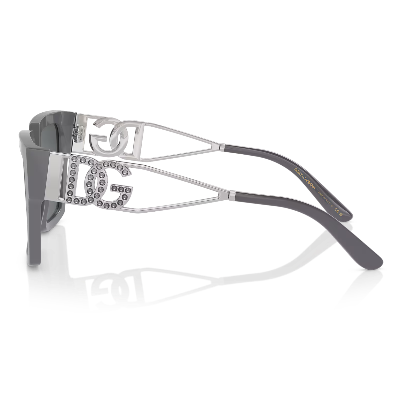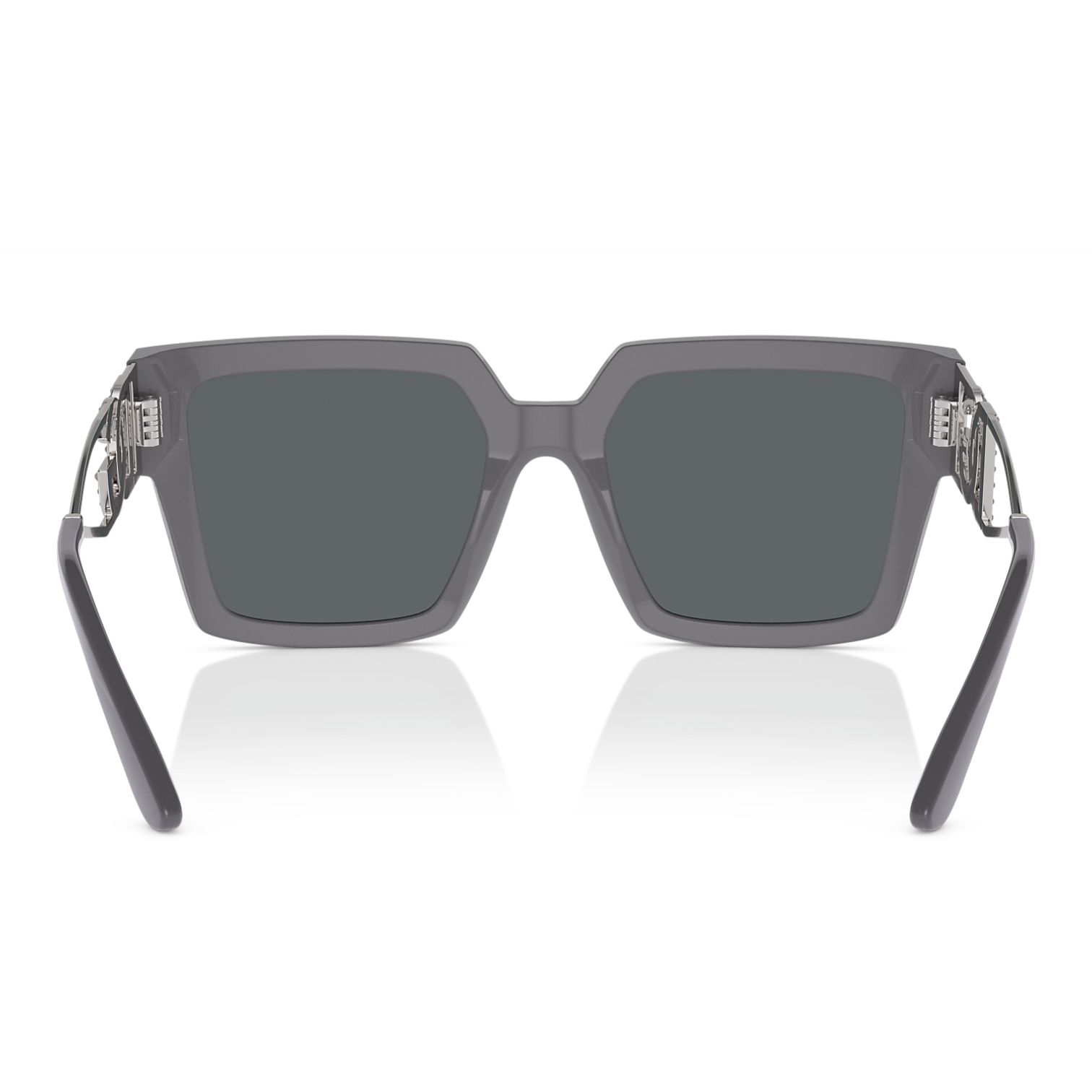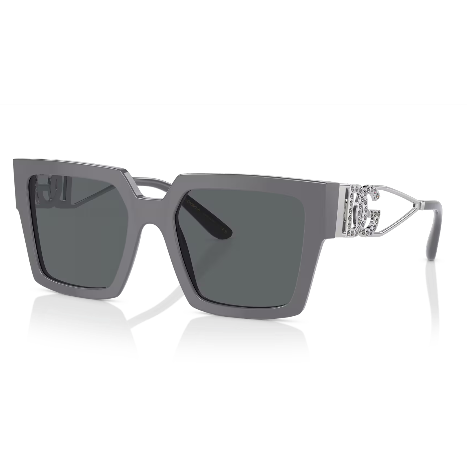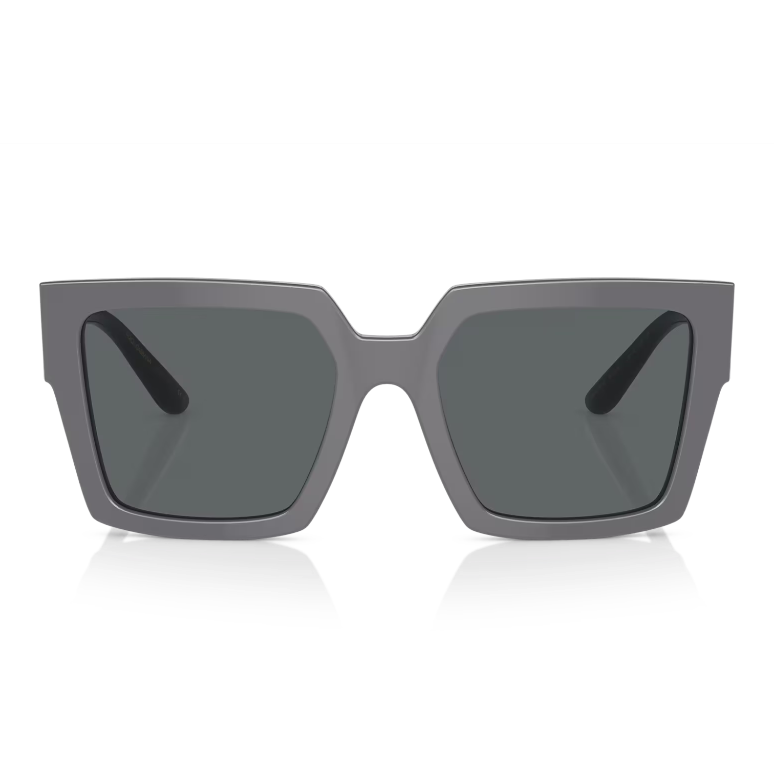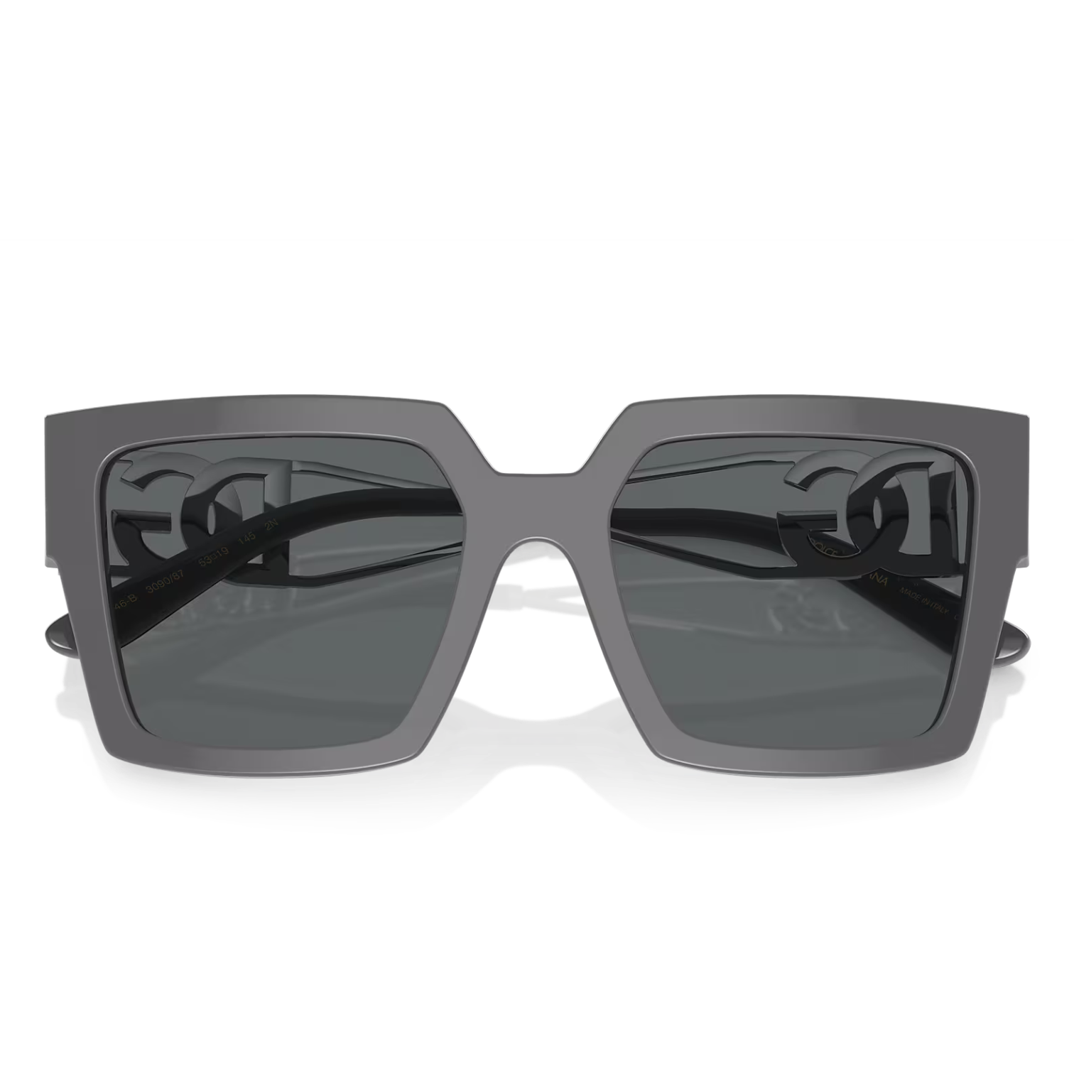 Estas gafas de sol presentan una montura cuadrada en acetato gris, combinada con lentes en gris oscuro que aportan un aire moderno y sofisticado. El diseño robusto y la calidad de los materiales reflejan la esencia de Dolce & Gabbana, ofreciendo durabilidad y comodidad.