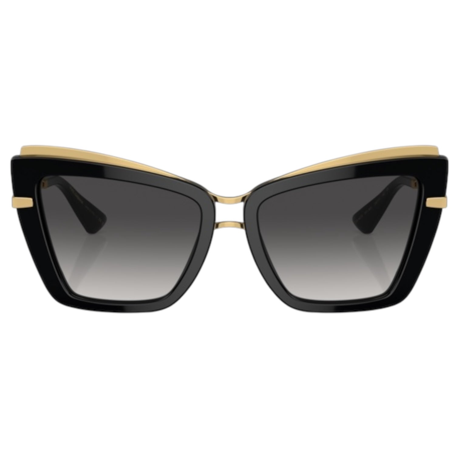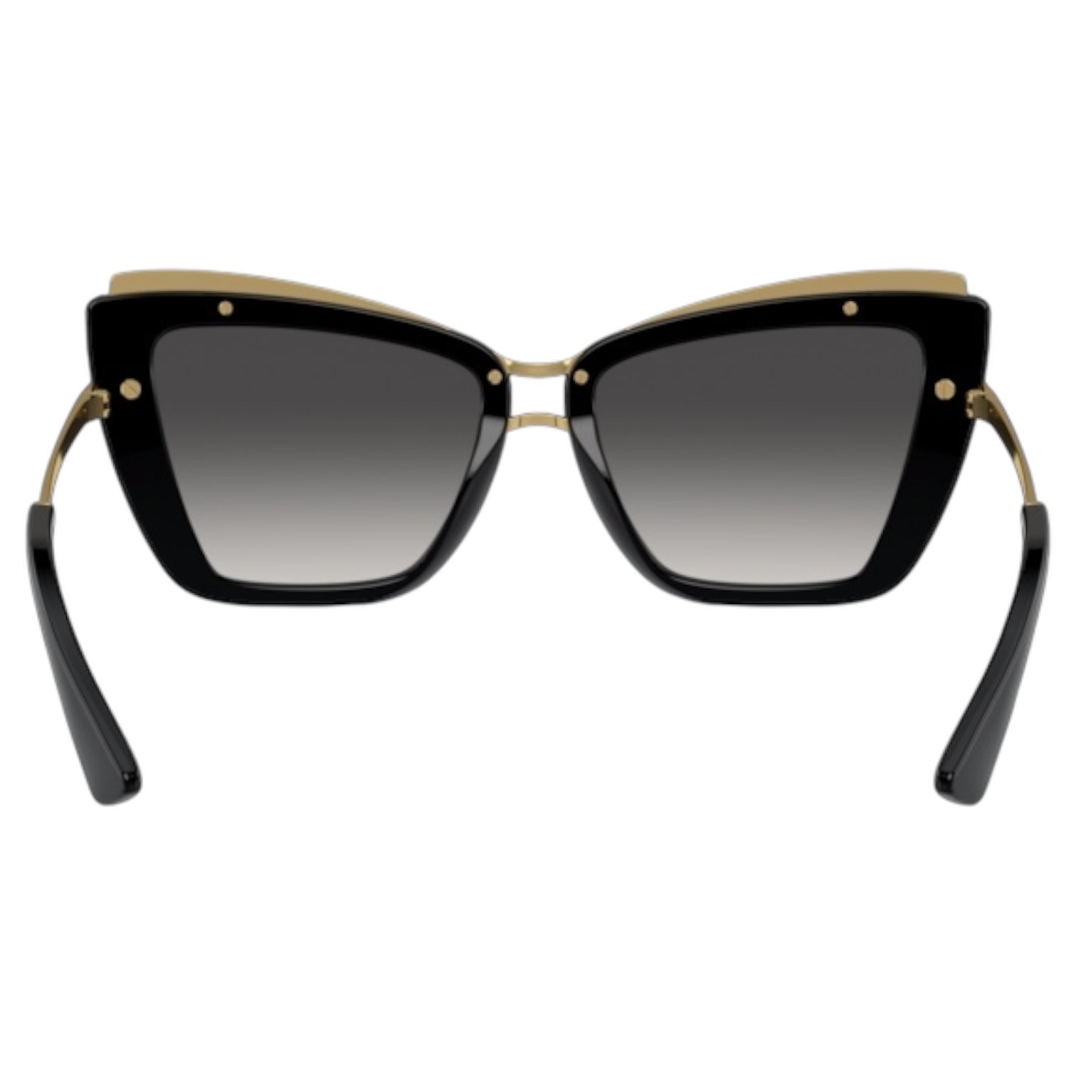 Las Dolce & Gabbana DG 4472 en el color 501/8G presentan una montura de acetato negro en forma de ojo de gato, combinada con lentes en degradado gris. Este diseño atemporal y sofisticado refleja la esencia de la marca, ofreciendo un equilibrio perfecto entre estilo clásico y contemporáneo.