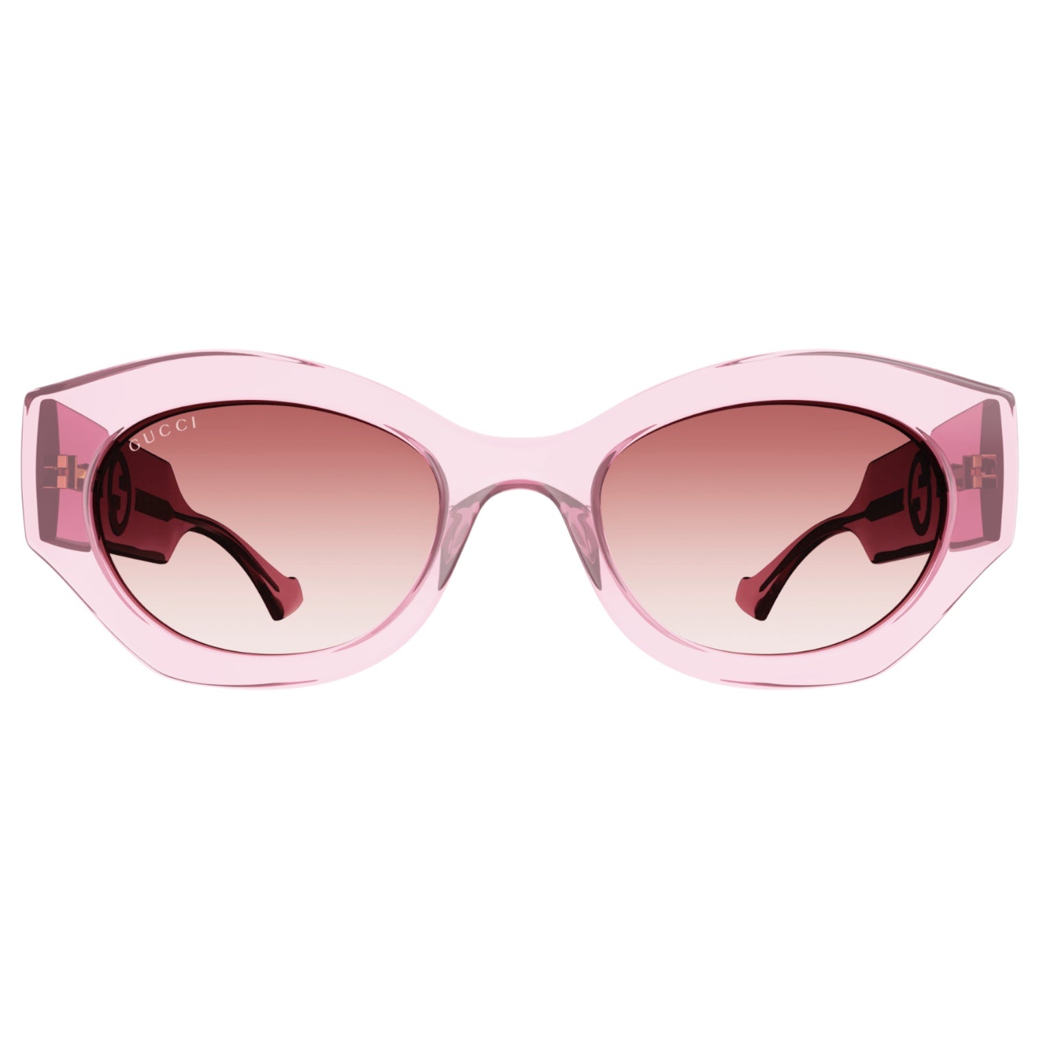 Las gafas de sol Gucci GG1553S 001 presentan un diseño de montura ovalada en color rosa brillante, elaborada en acetato de alta calidad. Los cristales rosas degradados no solo ofrecen una protección UV óptima, sino que también añaden un toque de sofisticación al conjunto.