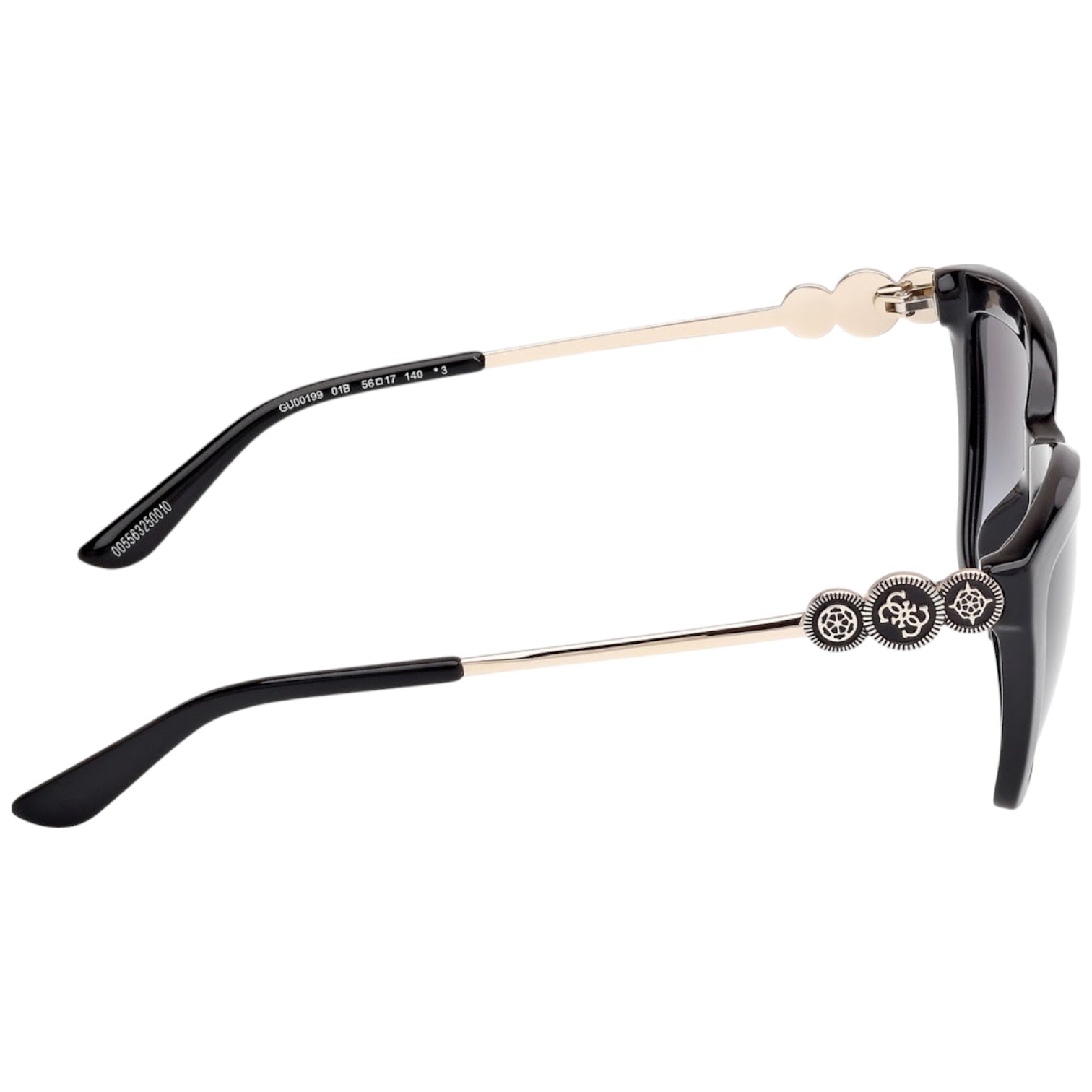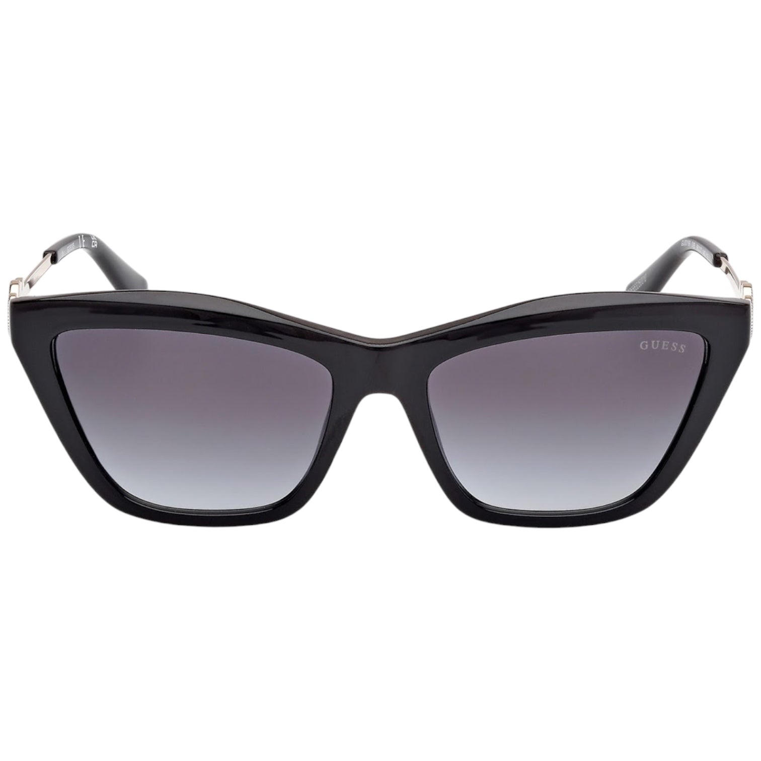 Clásico que nunca falla. Estas gafas Guess en negro brillante con lentes gris degradé destacan por su diseño Ojos de gato elegante y sofisticado.