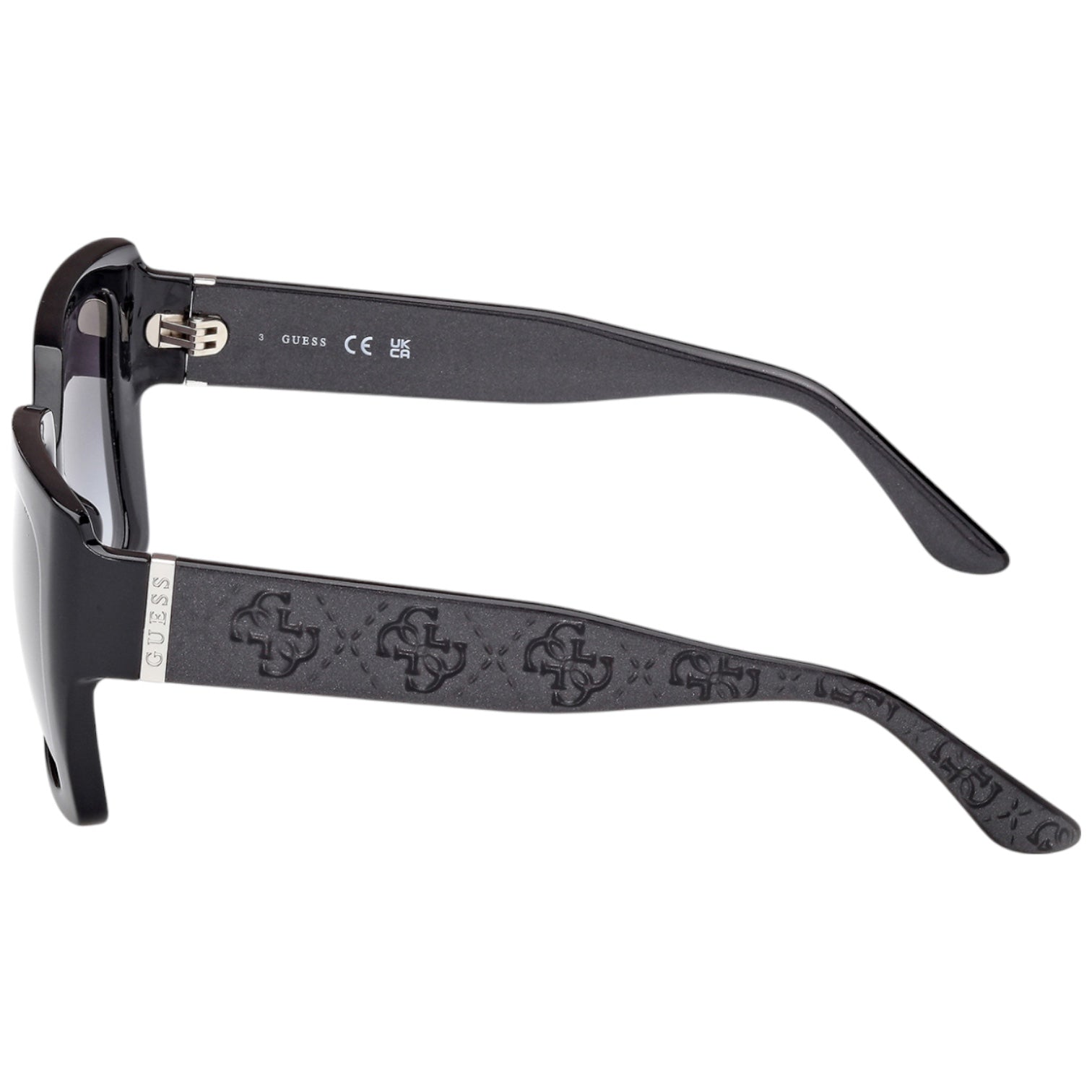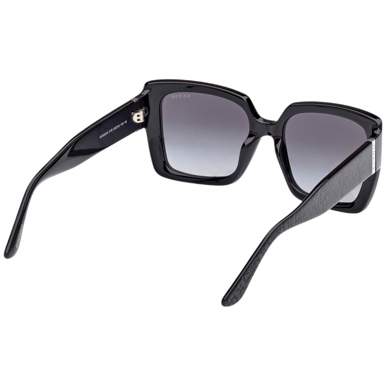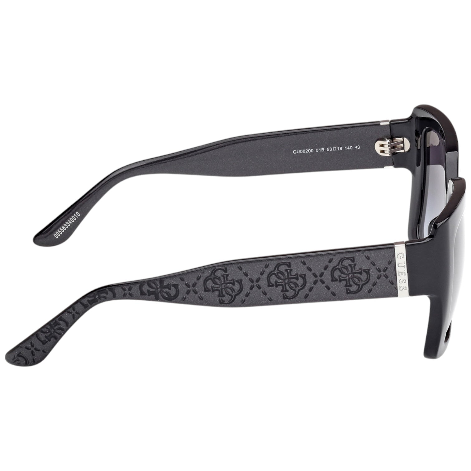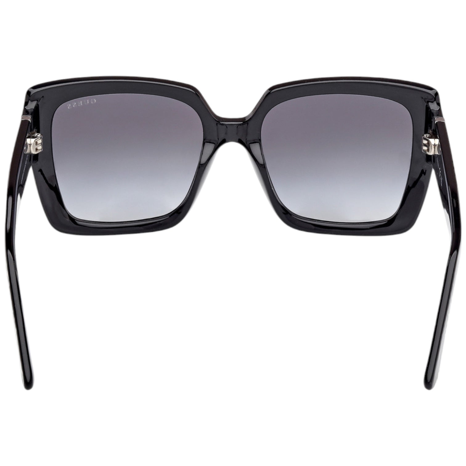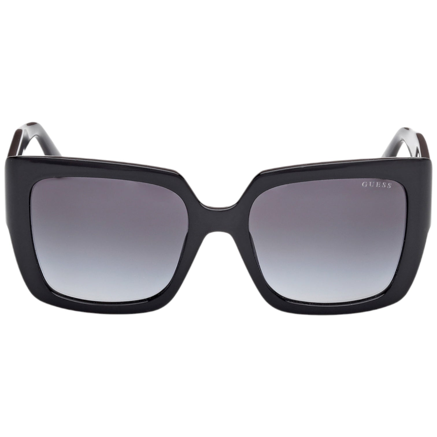 Diseño cuadrado contundente en negro brillante. Montura fuerte y moderna con lentes gris degradado: elegancia urbana y versátil en su máxima expresión
