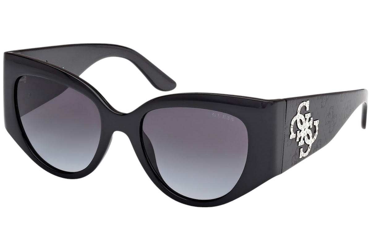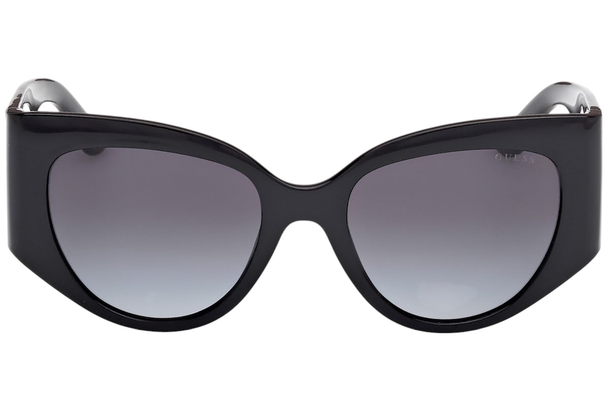 La versión GU00202‑01B luce una montura en negro brillante (Shiny Black) con lentes en degradado gris humo, logrando un look pulido y contemporáneo perfecto para quienes buscan elegancia sin concesiones.