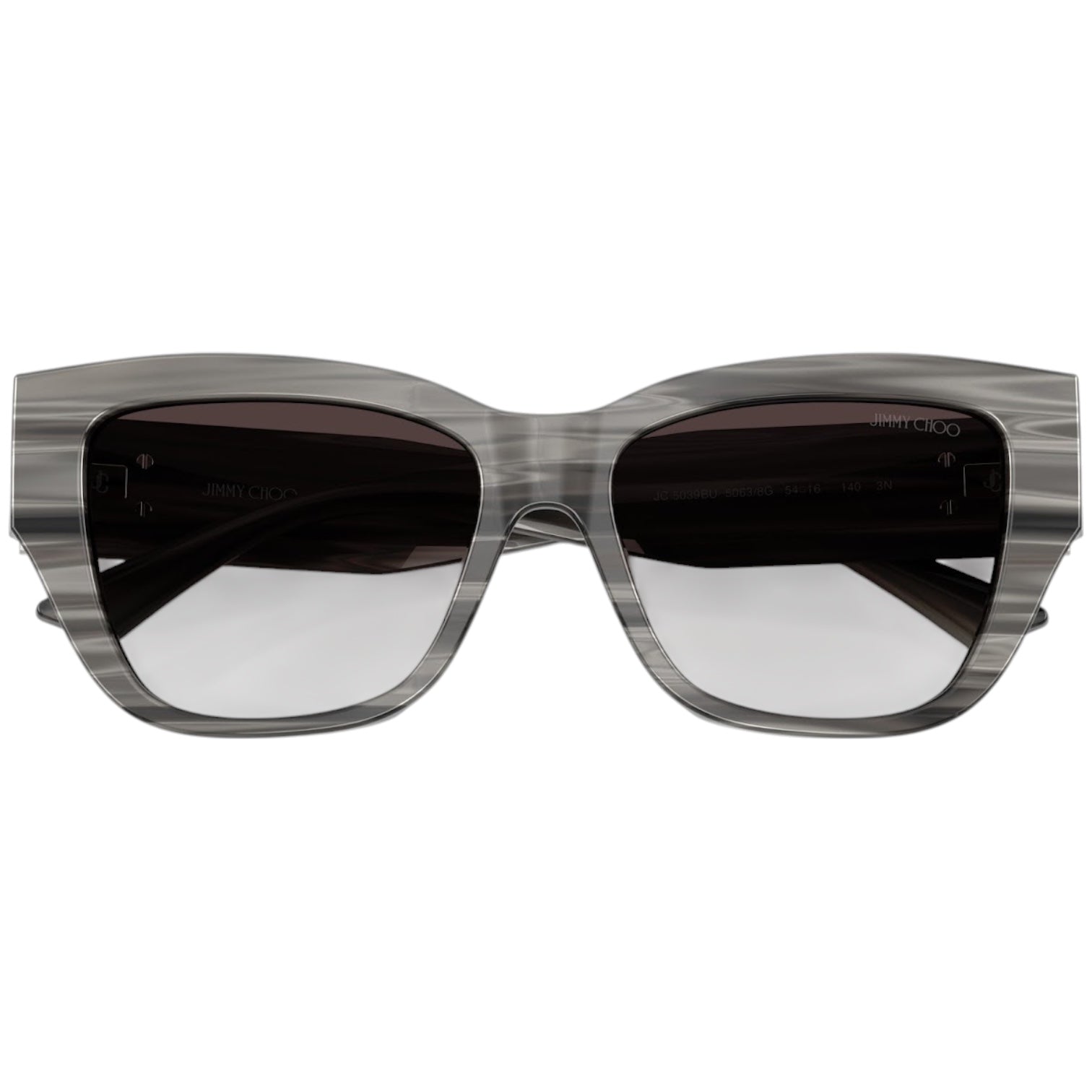Las Jimmy Choo JC5039BU en negro con líneas grises y efecto marmolado ofrecen una combinación de elegancia audaz y sofisticación. Su diseño ojo de gato oversize se adapta perfectamente a las tendencias actuales, aportando un aire chic y sofisticado. El contraste entre el negro intenso y las suaves vetas grises en efecto marmolado aporta un toque único que resalta tu estilo personal con distinción.