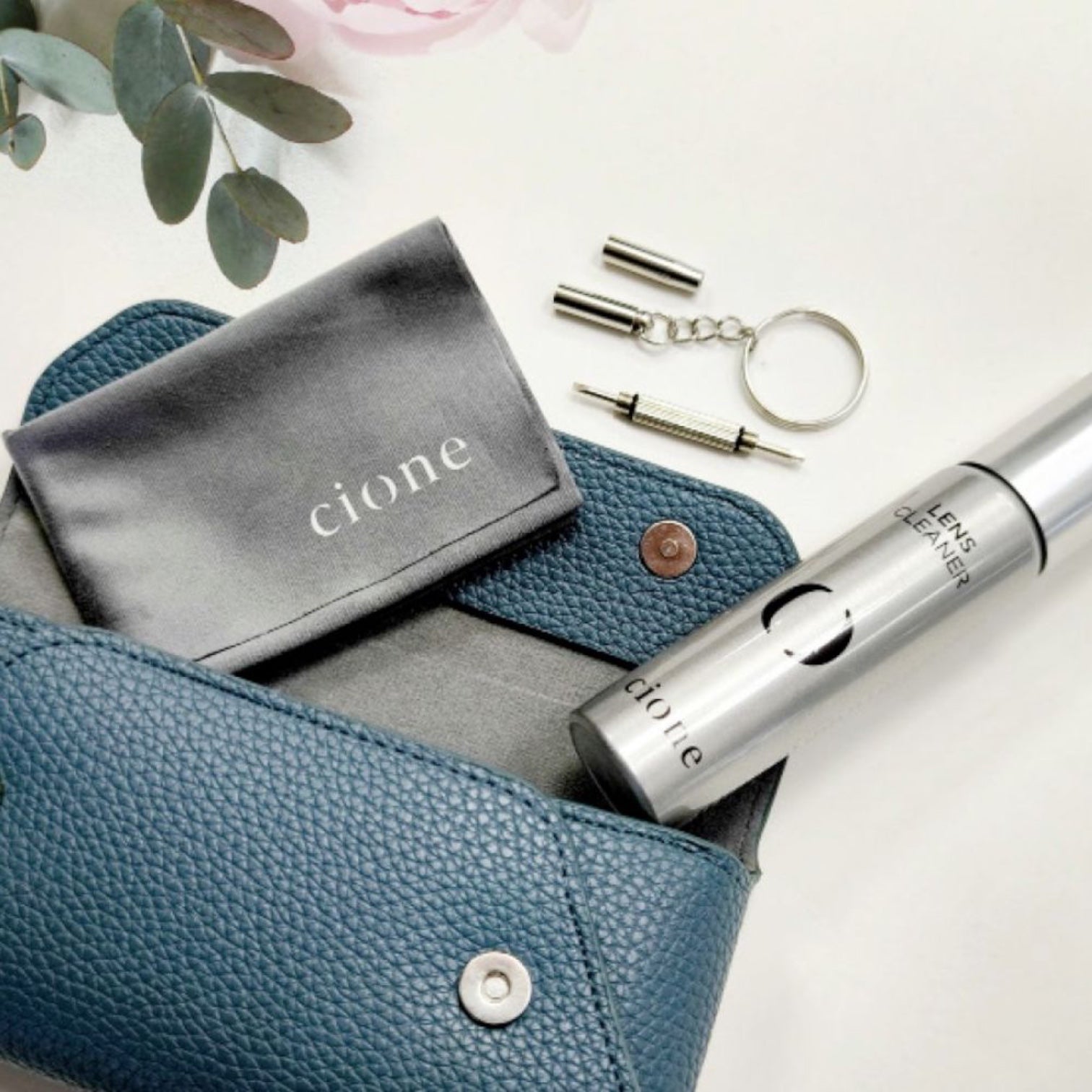 - Spray limpiador recargable: Un elegante frasco de aluminio que puedes rellenar con tu solución limpiadora preferida, facilitando la limpieza diaria de tus lentes.