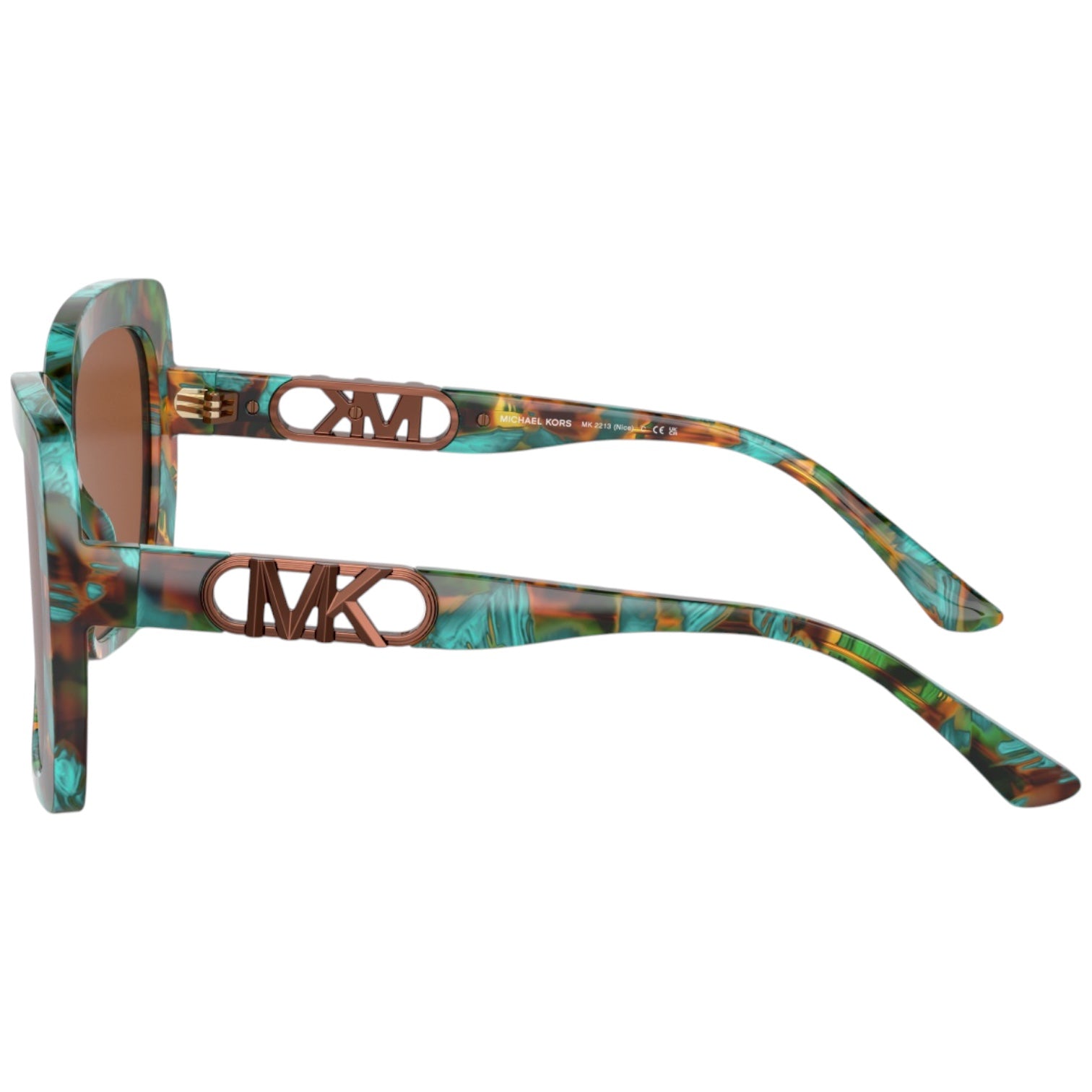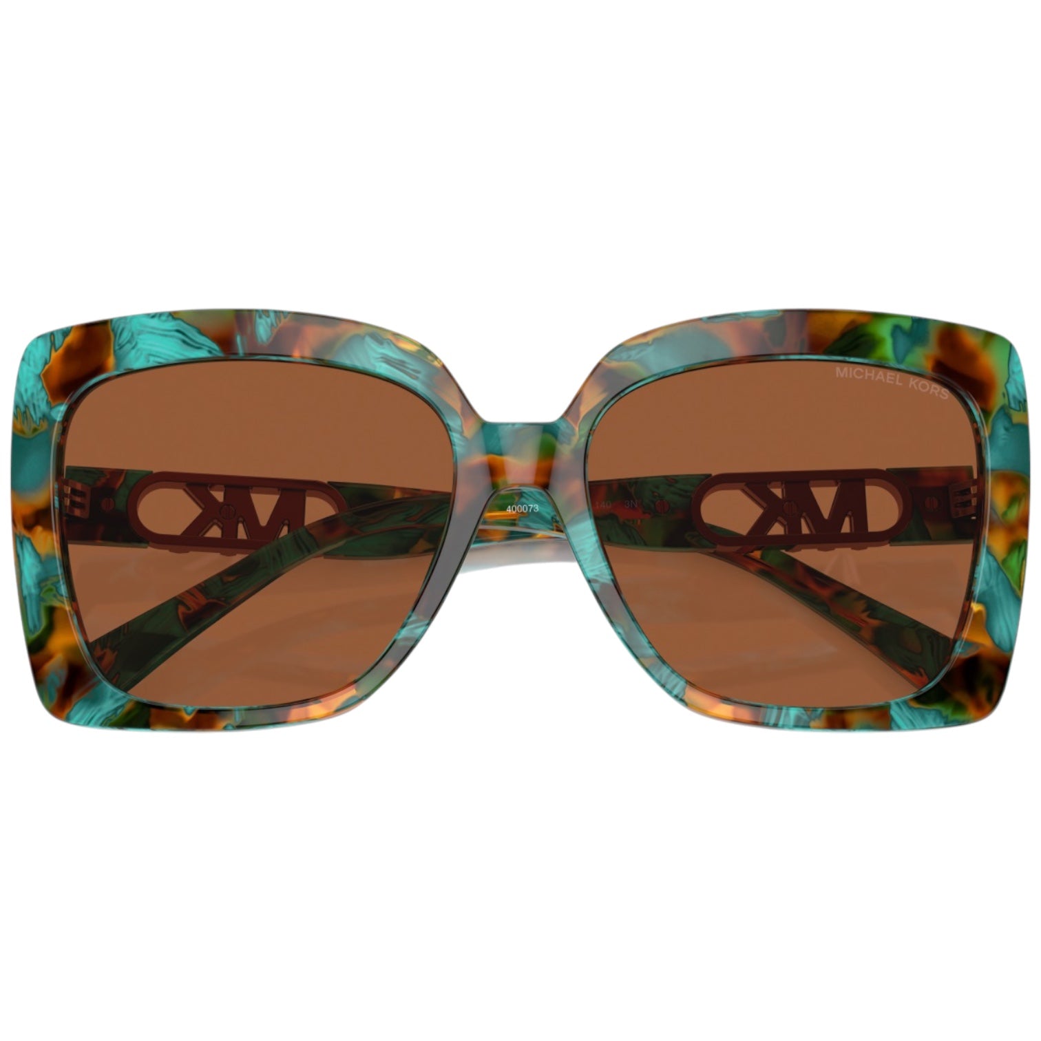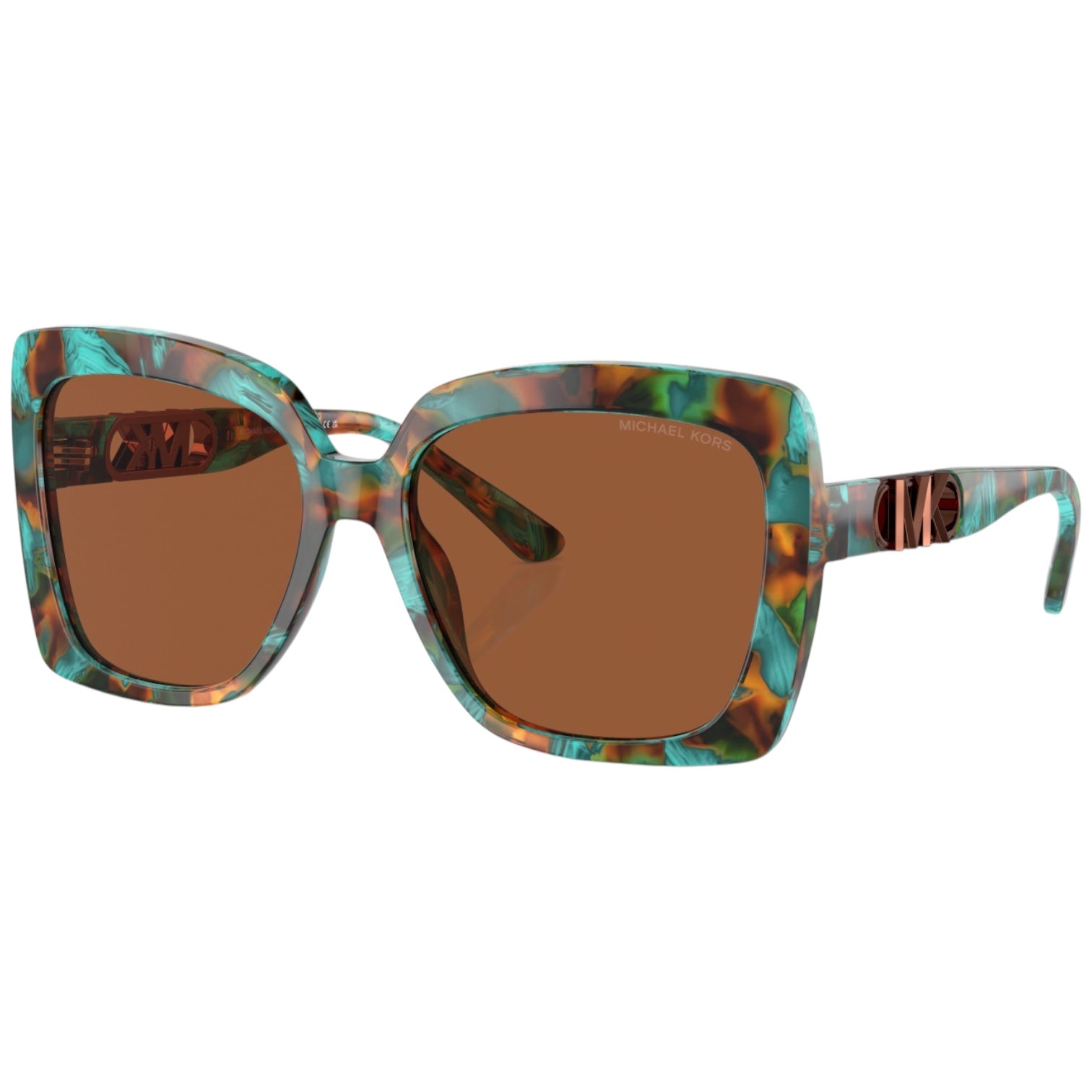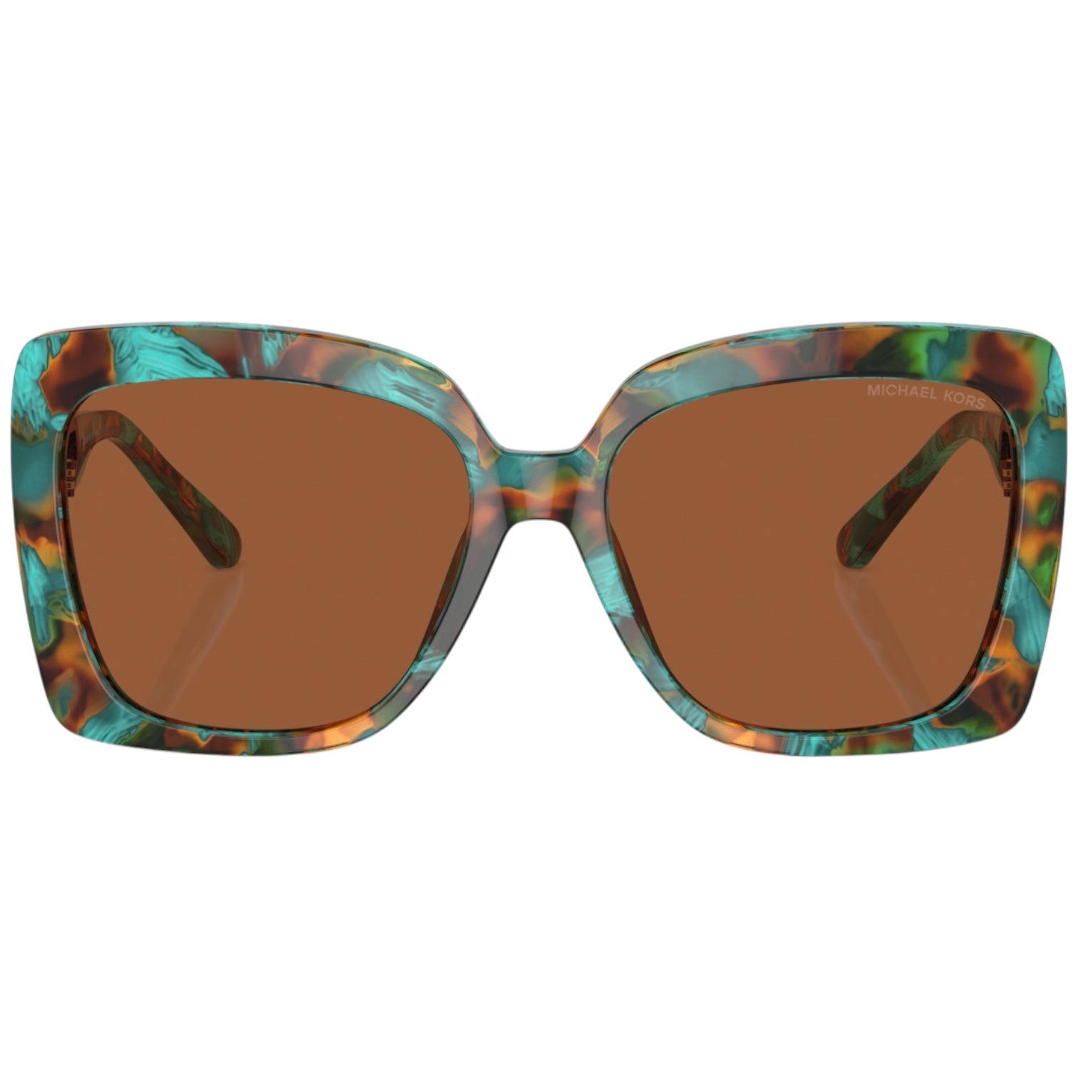 Estas gafas de sol presentan una montura en carey turquesa que aporta un toque fresco y sofisticado. Las lentes marrón sólido ofrecen una protección óptima contra los rayos UV, además de un estilo distintivo. El diseño cuadrado y las varillas con el logotipo dorado de Michael Kors completan este accesorio de moda imprescindible.