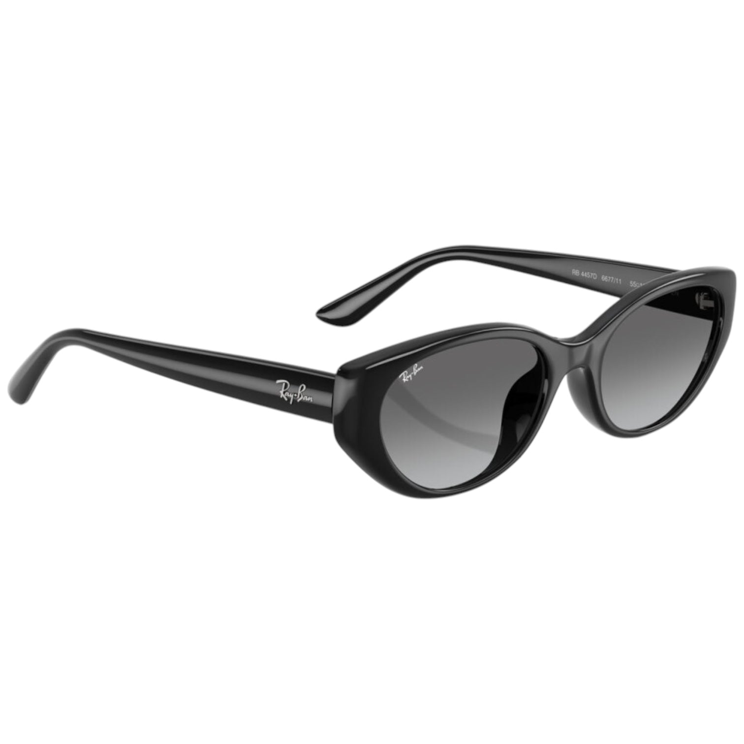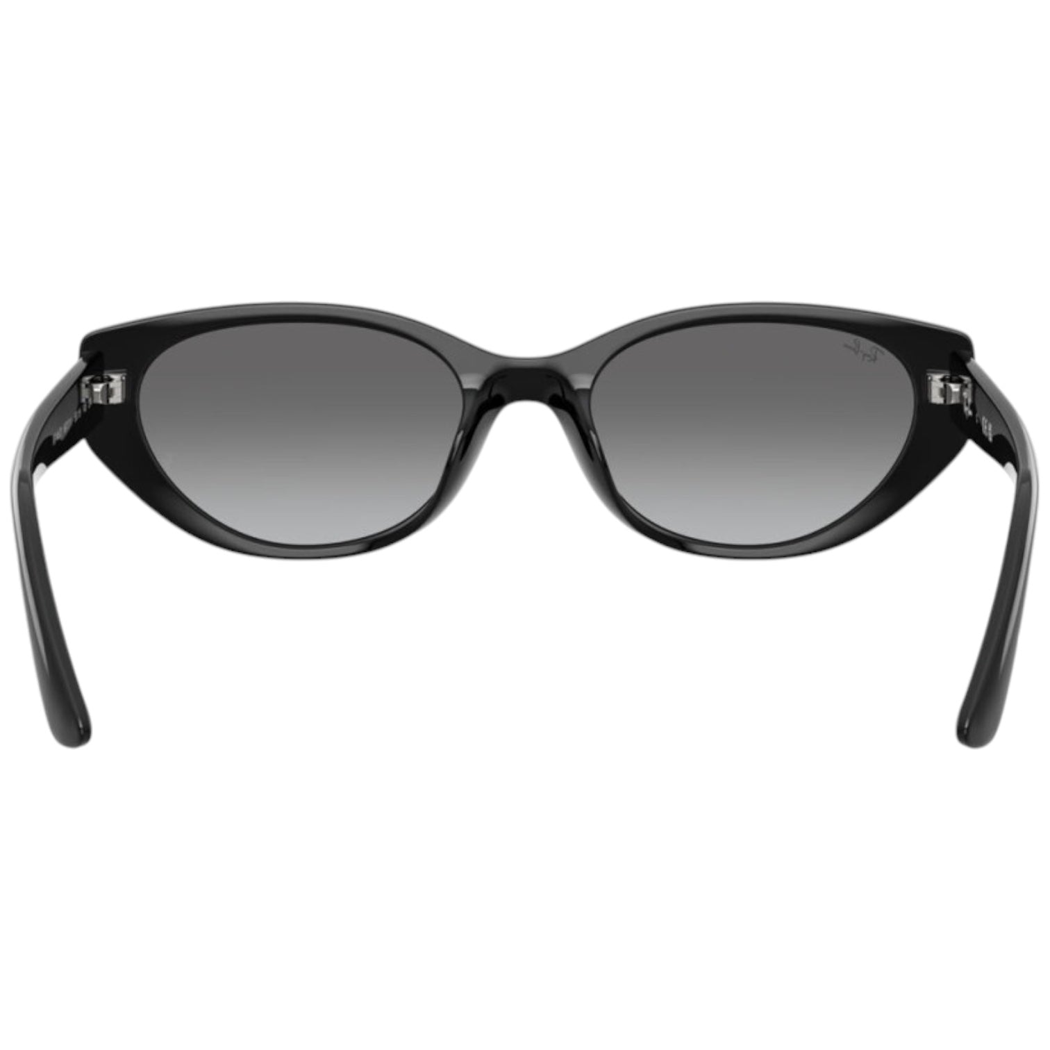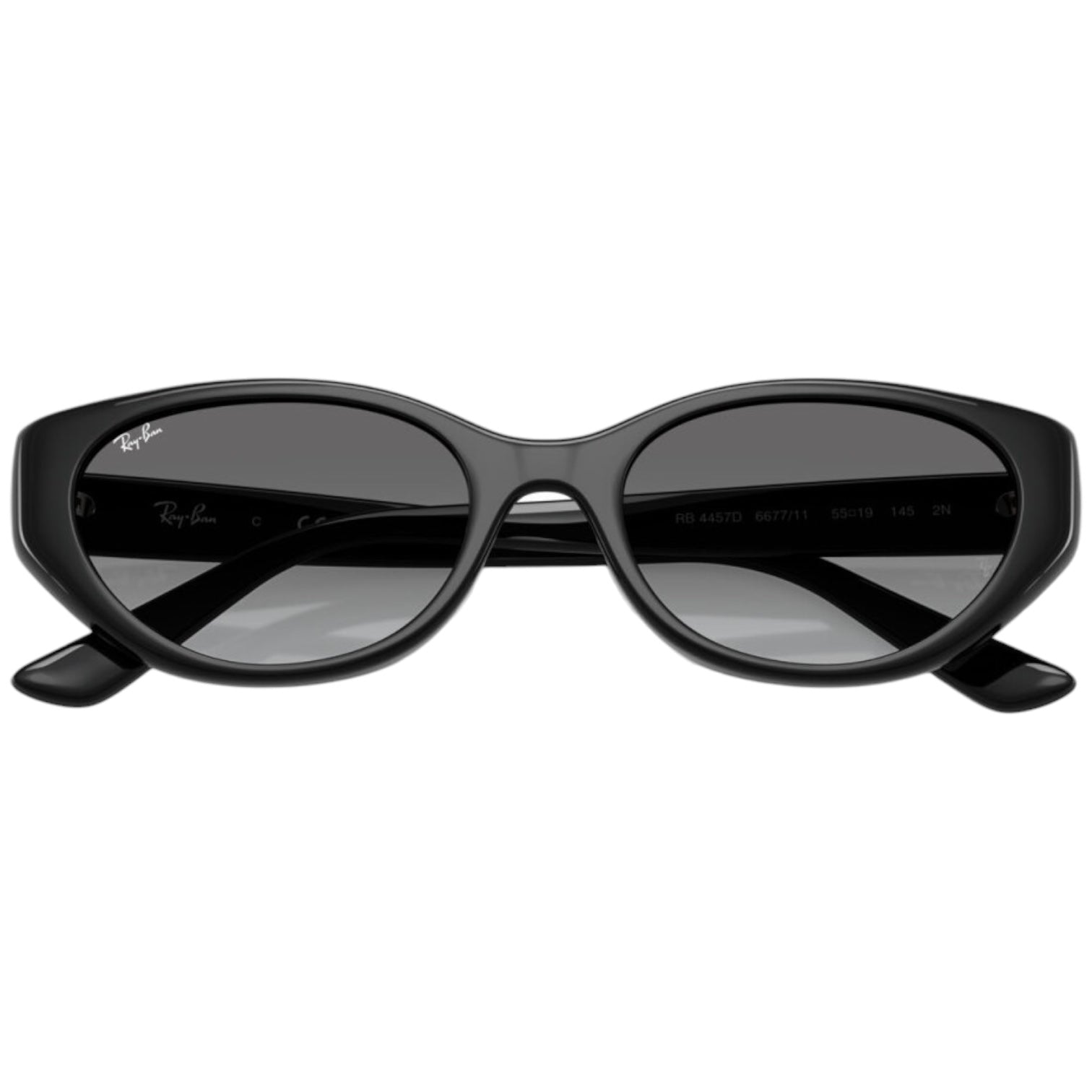 Las RB4457D presentan una montura ovalada en negro brillante, con un diseño moderno y elegante. Las lentes gris degradado ofrecen una protección eficaz contra los rayos UV, asegurando una visión clara incluso en días soleados.Fabricadas con materiales bio-based, estas gafas reflejan un compromiso con la sostenibilidad sin sacrificar el estilo