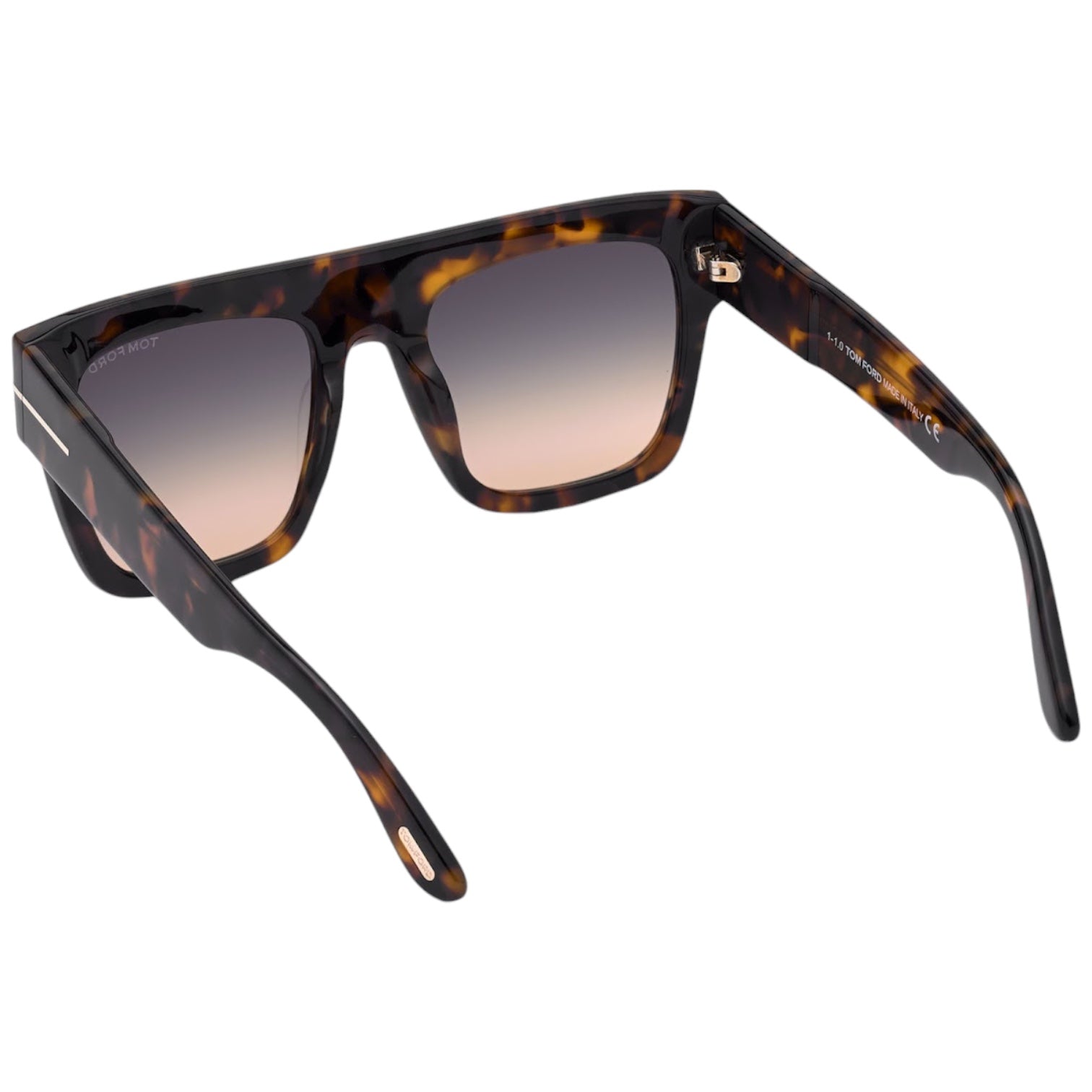 Unas gafas que irradian elegancia y modernidad. La montura cuadrada en carey oscuro se combina con lentes marrón degradado, mientras que la barra superior marcada y las varillas finas realzan su estilo contemporáneo y sofisticado. El detalle metálico “T” aporta un toque de distinción que las hace únicas.