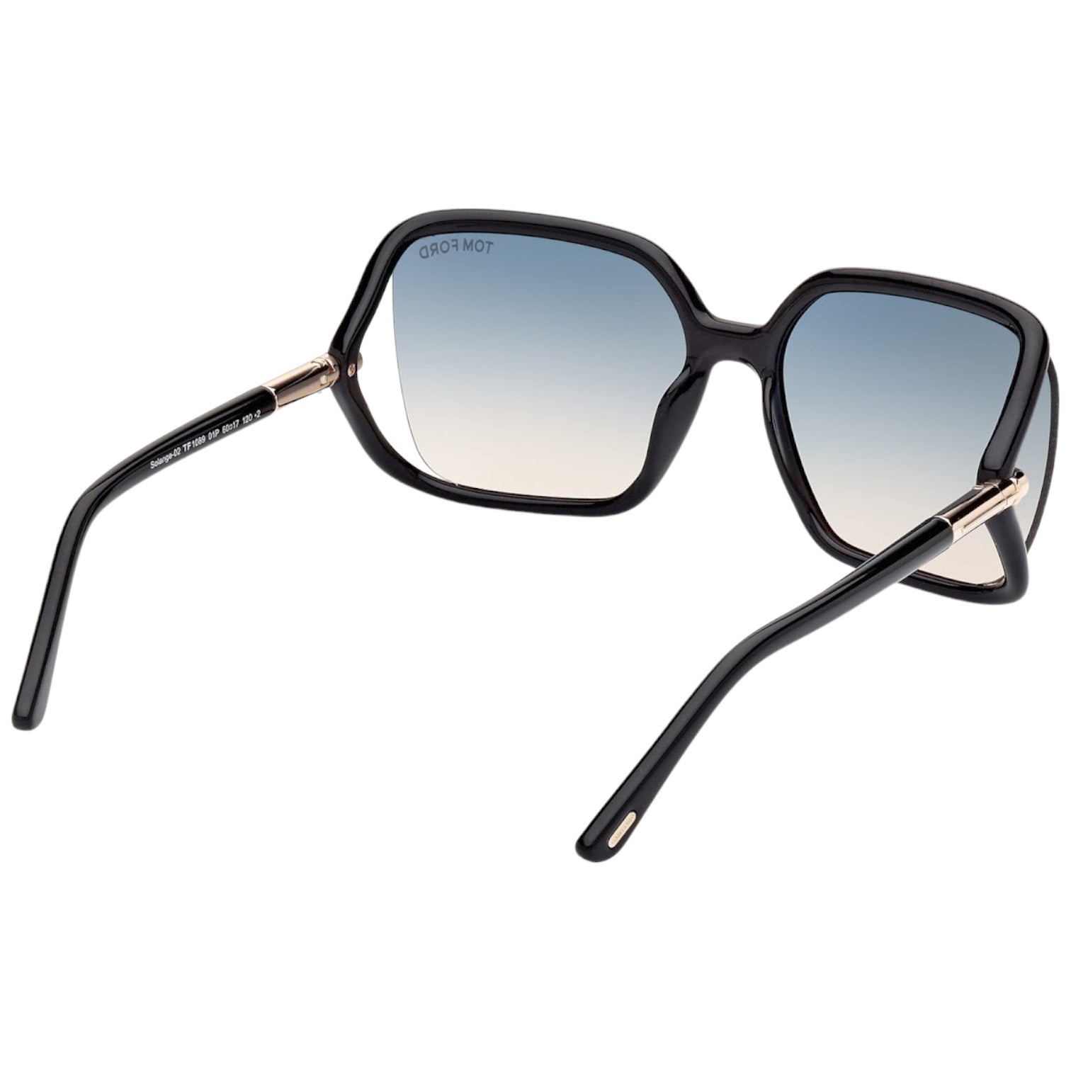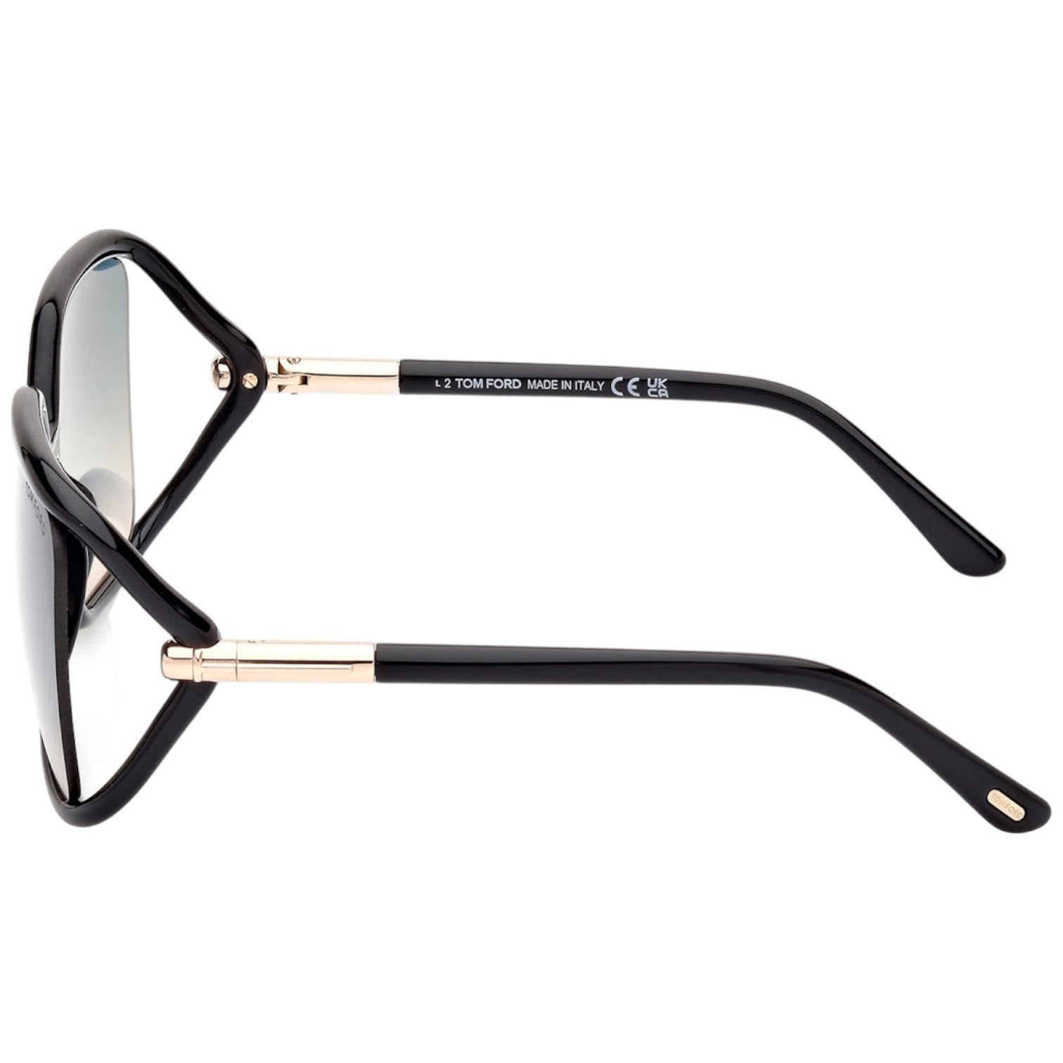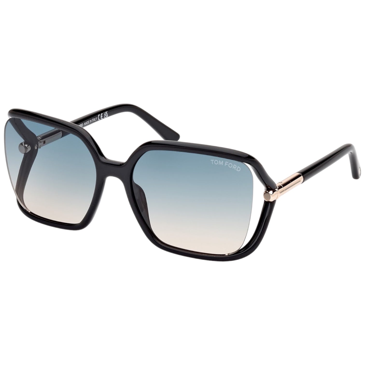 Elegancia y modernidad en una sola mirada. La montura cuadrada en negro brillante aporta presencia y sofisticación, mientras que las lentes verde degradado crean un contraste fresco y distintivo. Las varillas con el icónico detalle metálico “T” refuerzan su carácter exclusivo, haciendo de estas gafas un accesorio que transforma cualquier outfit en una declaración de estilo.