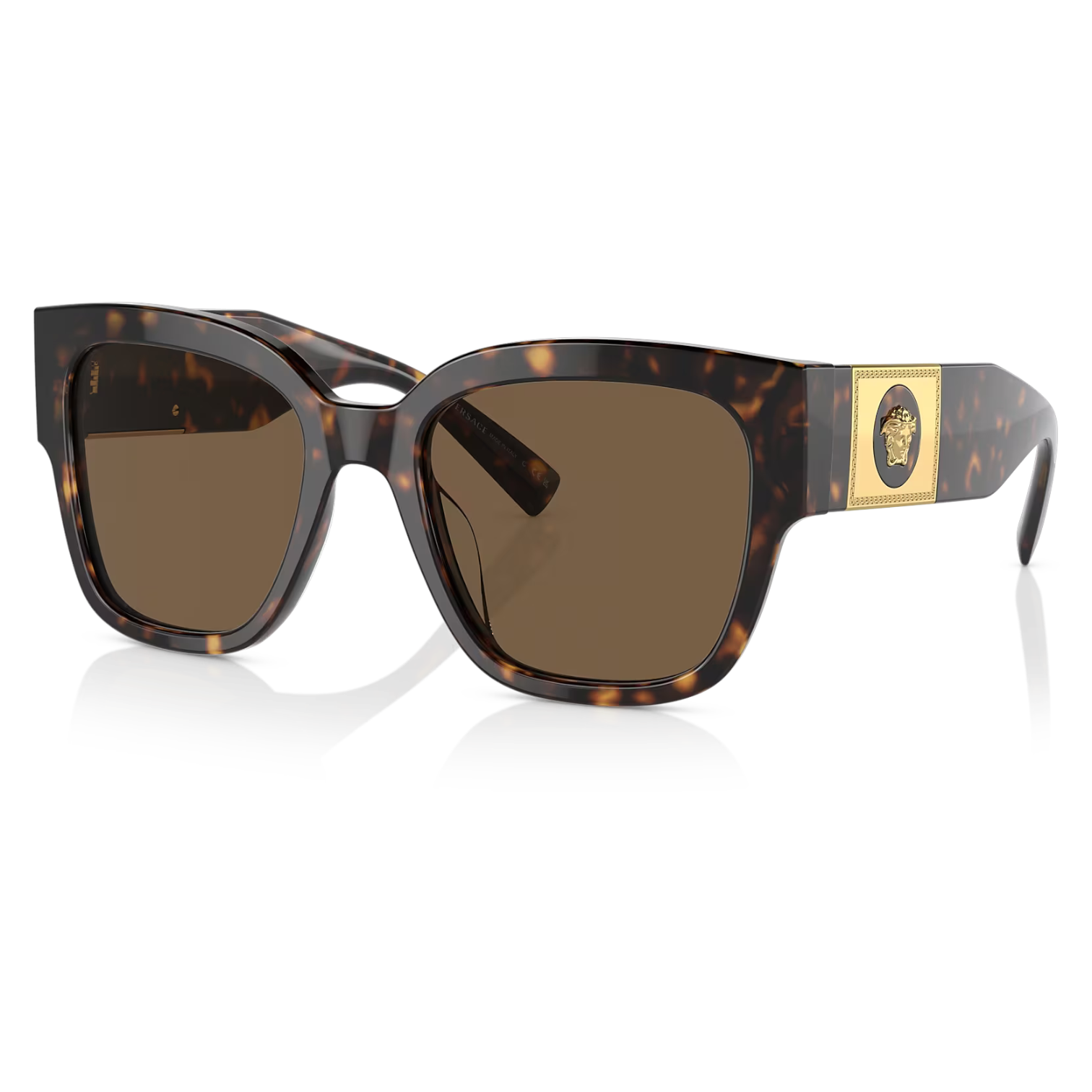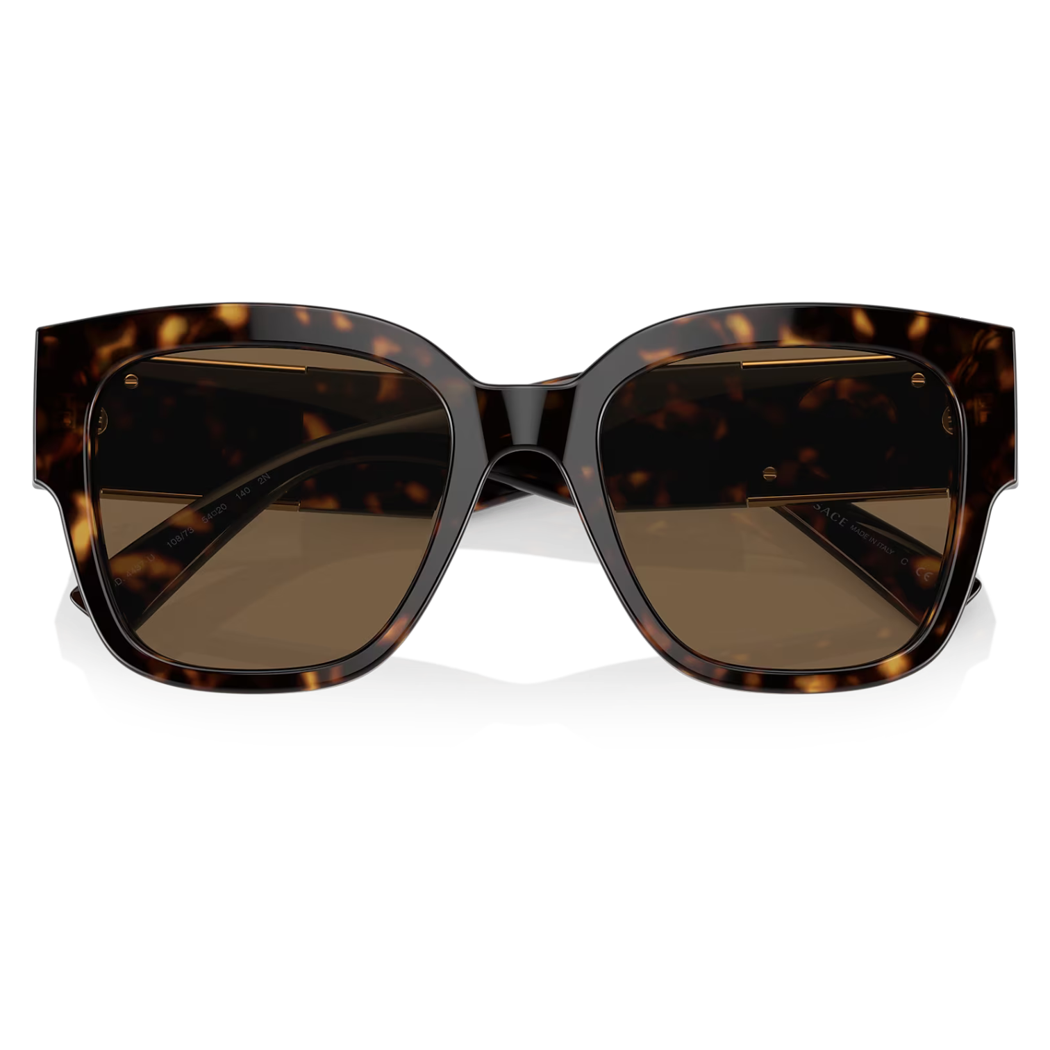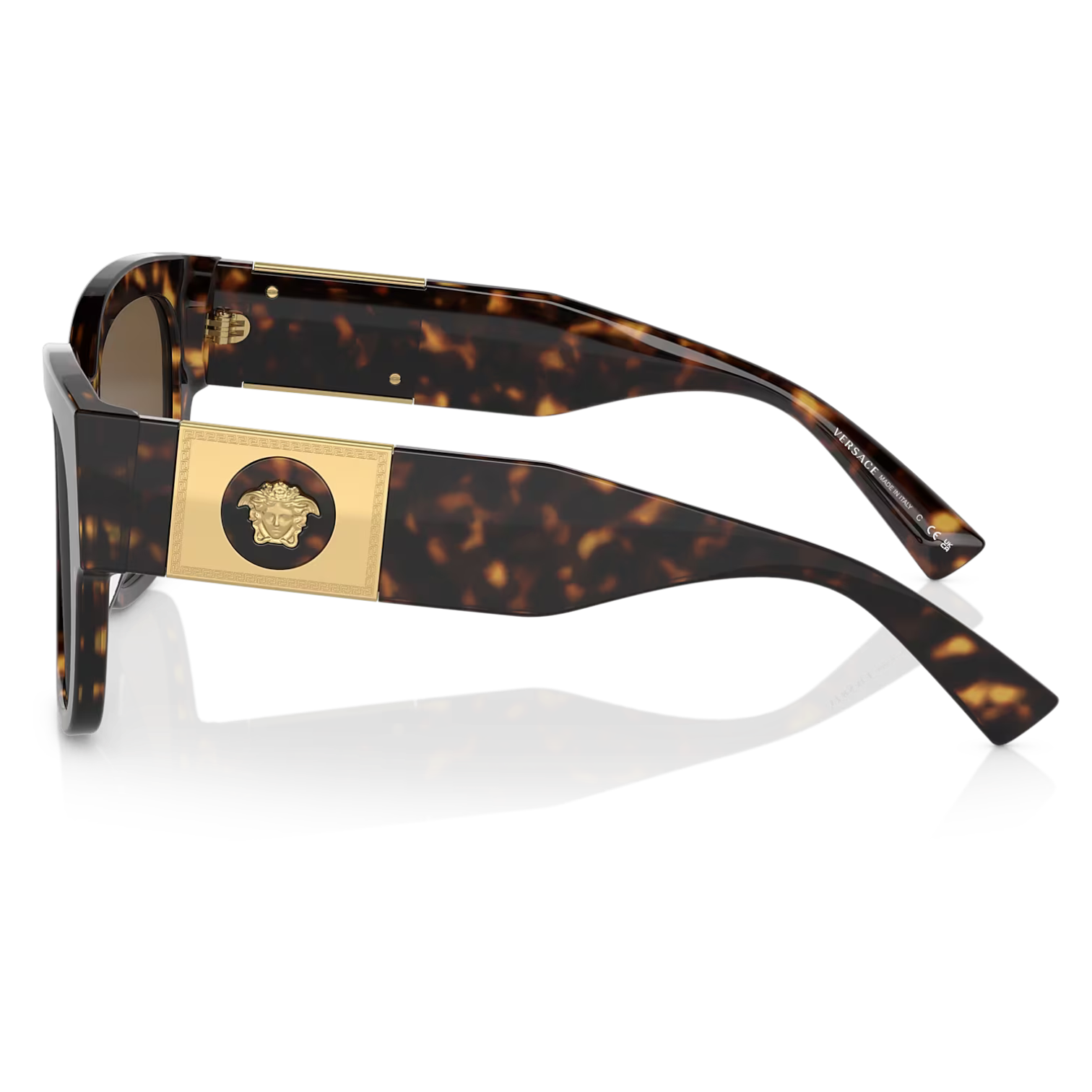 Las gafas de sol Versace VE 4437U en el color 108/73 presentan una montura de acetato en tono habana oscuro, ofreciendo un diseño cuadrado que combina elegancia y modernidad. Las lentes marrón oscuro proporcionan una protección eficaz contra los rayos UV, garantizando comodidad y estilo.