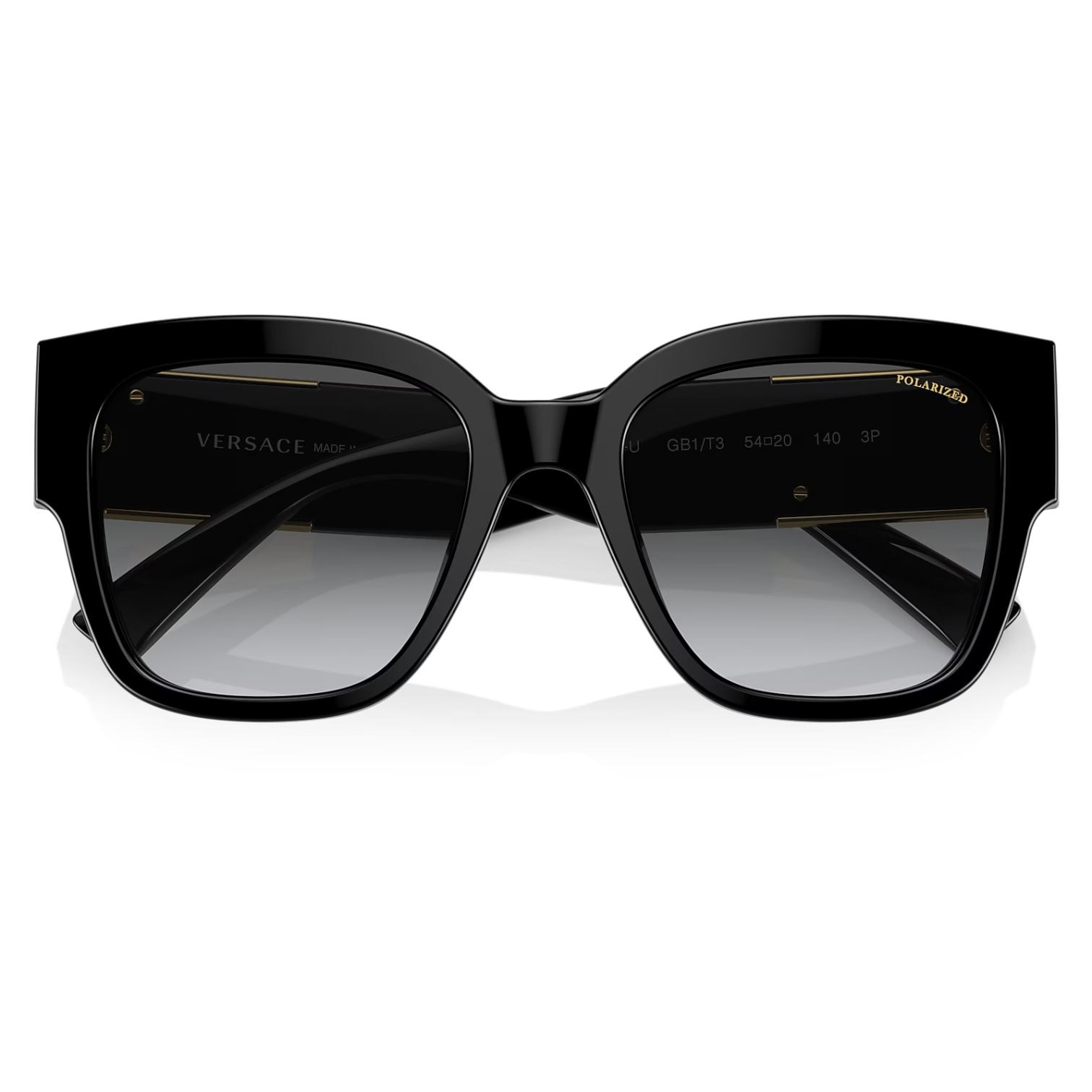 Descubre la nueva montura, diseñada para quienes buscan sofisticación y elegancia. Las gafas de sol Versace VE4437U presentan un color negro pulido combinado con lentes de gradiente gris polar para un look llamativo. Estas gafas están fabricadas en acetato de primera calidad y ofrecen comodidad y estilo para su uso diario.