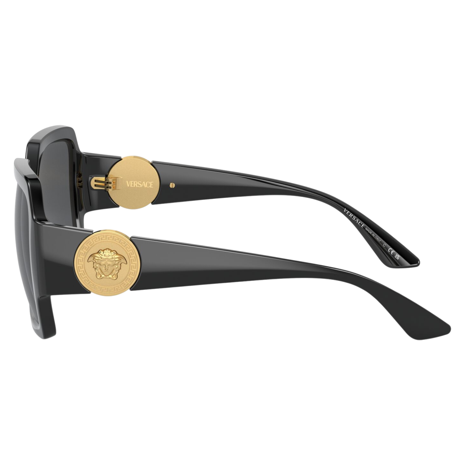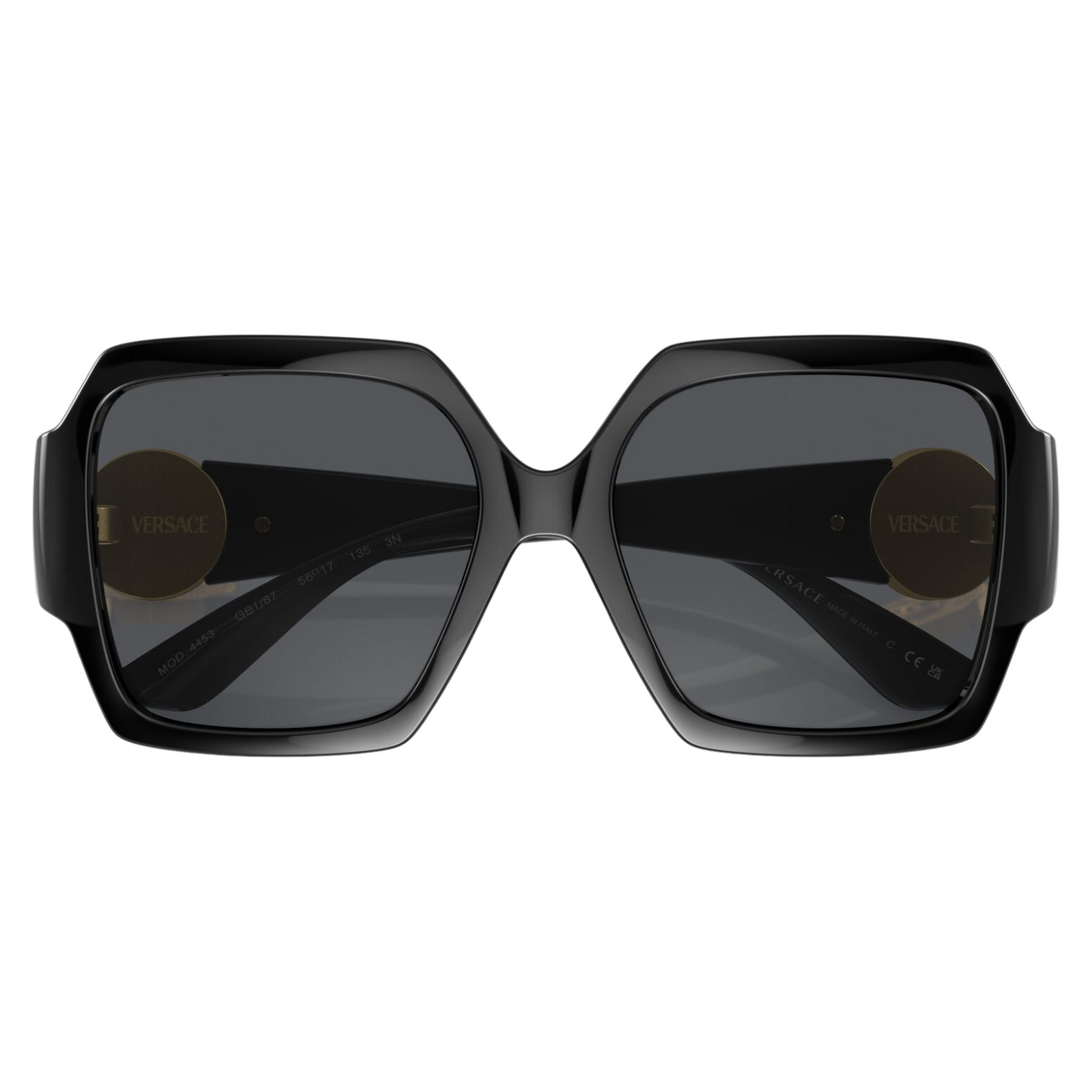 Las gafas de sol Versace VE 4453 GB1/87 presentan una montura cuadrada de acetato negro que irradia sofisticación y modernidad. Las varillas, adornadas con el emblemático logotipo de la Medusa en dorado, aportan un toque de lujo distintivo. Equipadas con lentes grises que ofrecen una protección UV del 100%, estas gafas combinan estilo y funcionalidad, ideales para quienes buscan una declaración de moda audaz.
