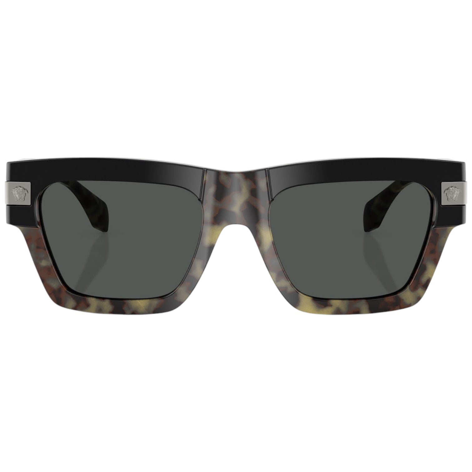Versace VE 4464 5456/87 – Estas gafas de sol presentan una montura rectangular de acetato en color havana, aportando un diseño atemporal y sofisticado. Las varillas están adornadas con el logotipo dorado de la Medusa, añadiendo un toque de lujo distintivo. Equipadas con lentes gris oscuro, estas gafas son ideales para quienes buscan una declaración de estilo audaz y elegante