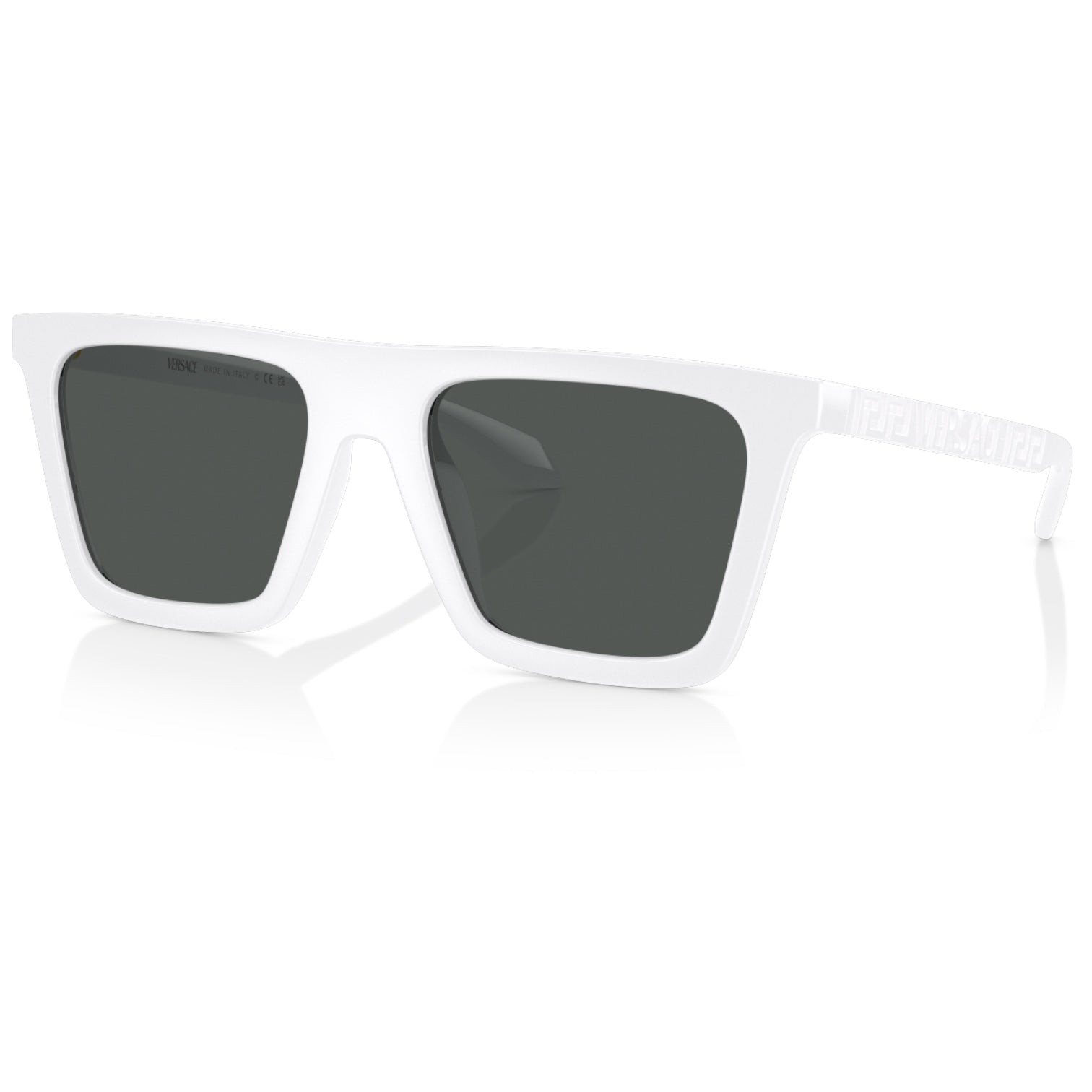 Versace VE 4468U 314/87 – Estas gafas de sol presentan una montura rectangular de acetato blanco, que aporta un diseño moderno y sofisticado. Las varillas están adornadas con el logotipo dorado de la Medusa, añadiendo un toque de lujo distintivo. Equipadas con lentes gris oscuro, estas gafas son ideales para quienes buscan una declaración de estilo audaz y elegante