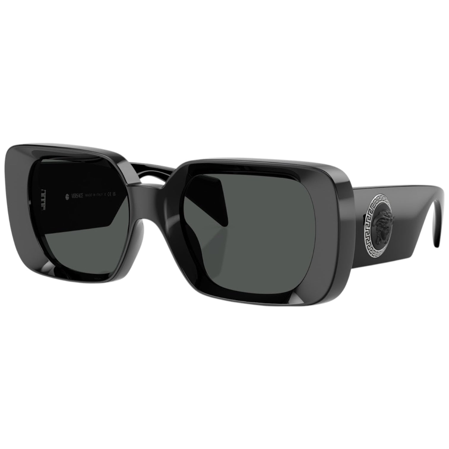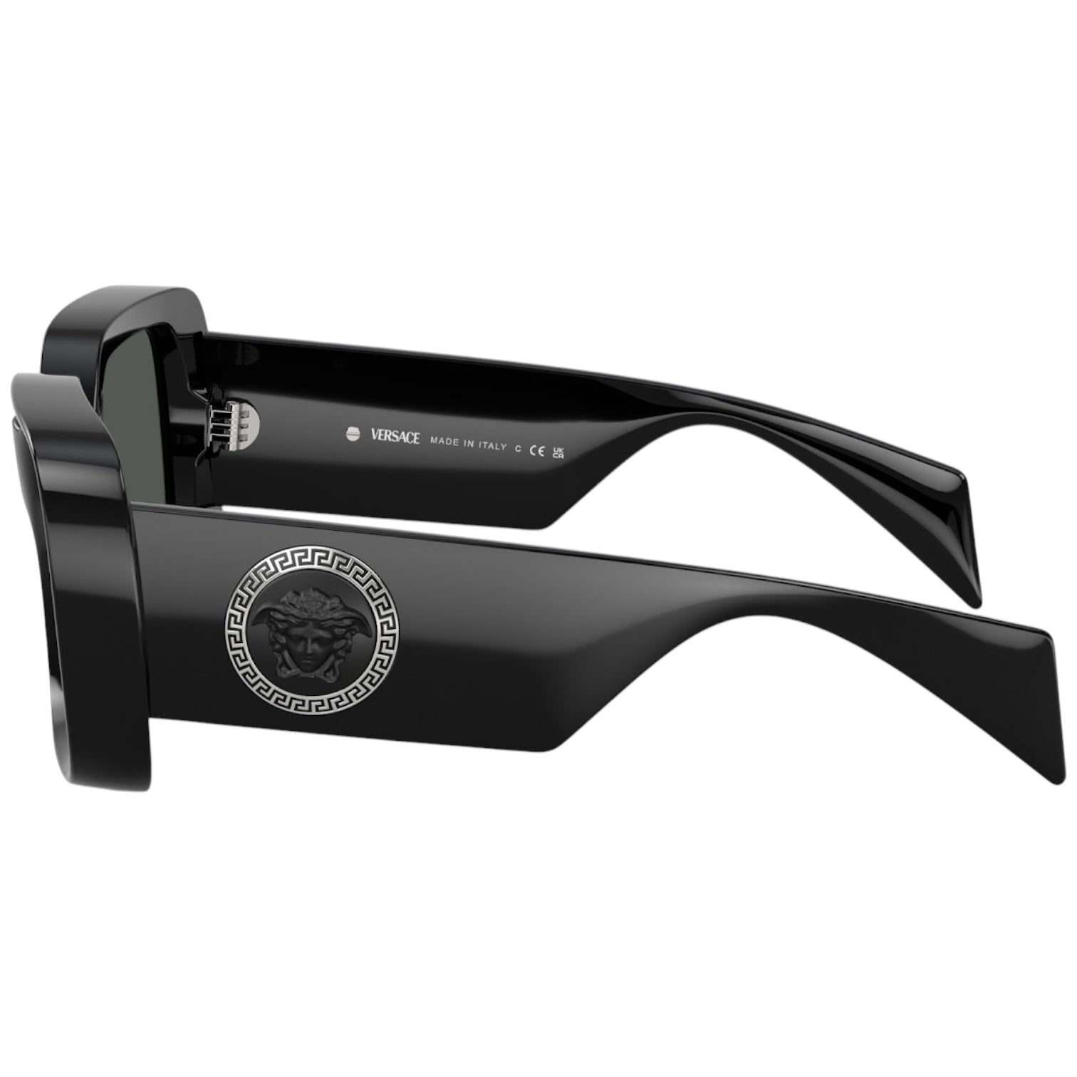 Versace VE 4473U GB1/87 – Estas gafas de sol presentan una montura cuadrada de acetato negro, que aporta un diseño moderno y sofisticado. Las varillas están adornadas con el logotipo dorado de la Medusa, añadiendo un toque de lujo distintivo. Equipadas con lentes gris oscuro, estas gafas son ideales para quienes buscan una declaración de estilo audaz y elegante