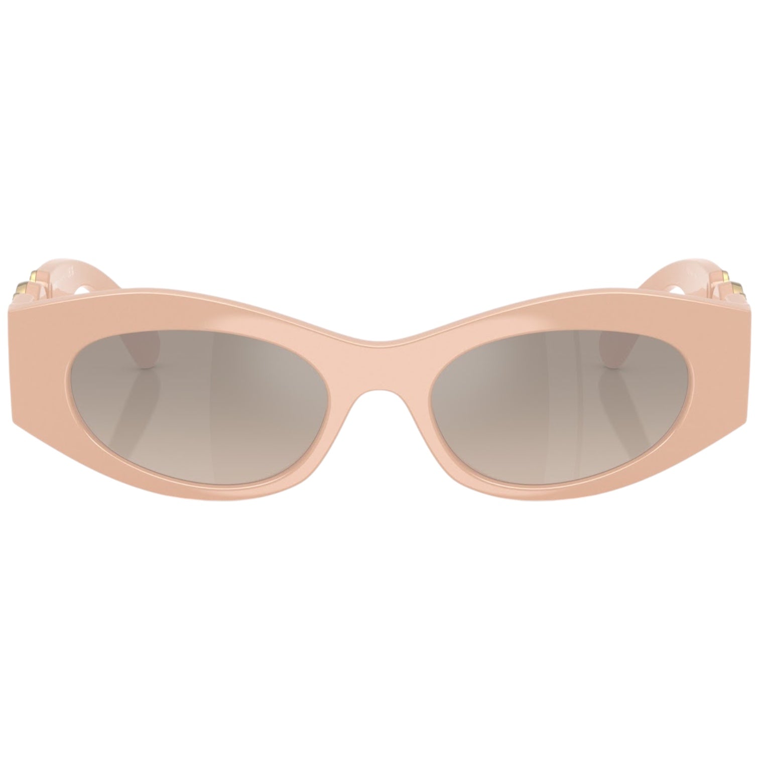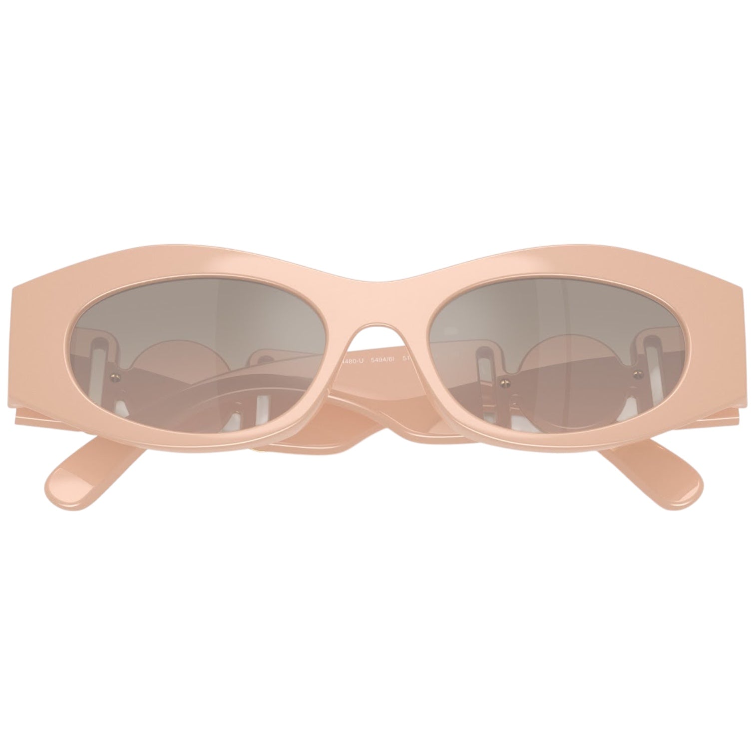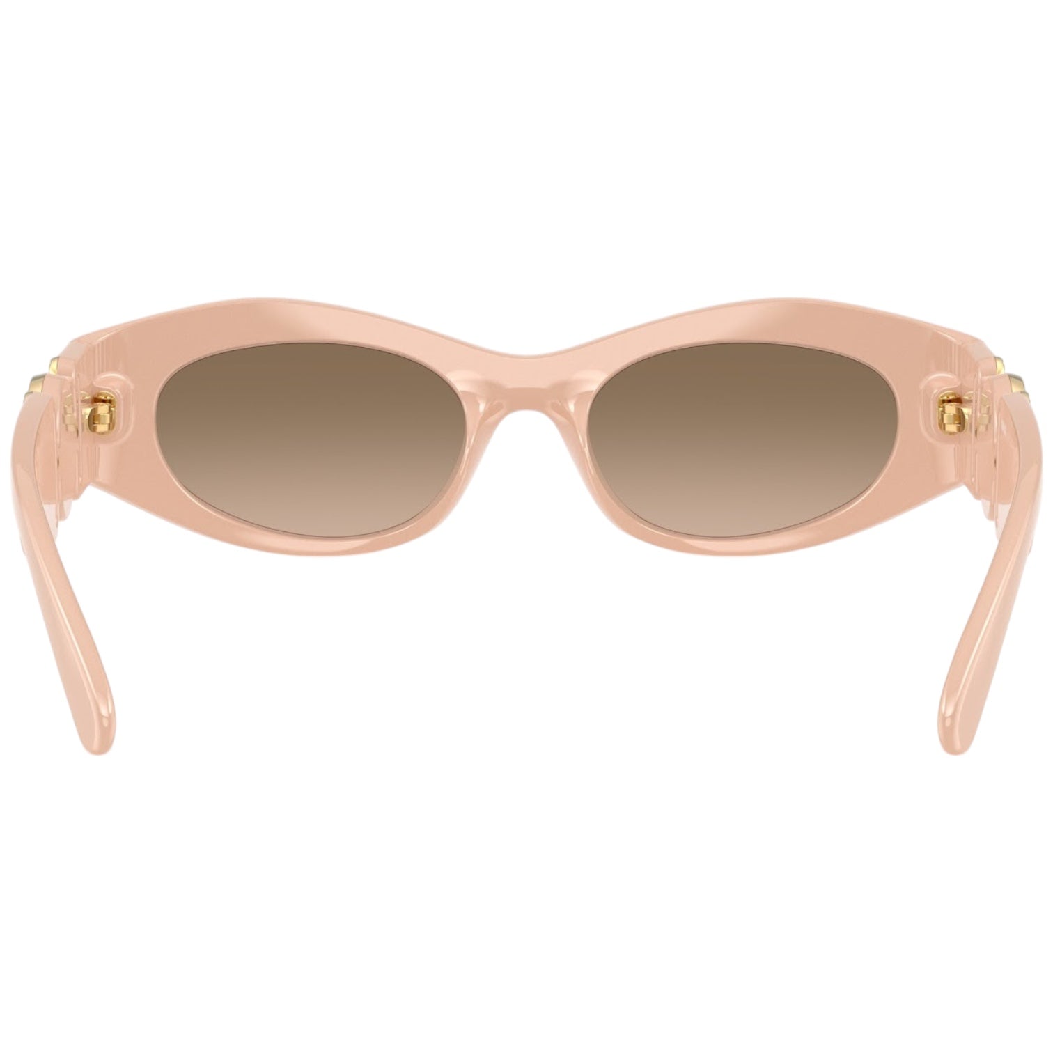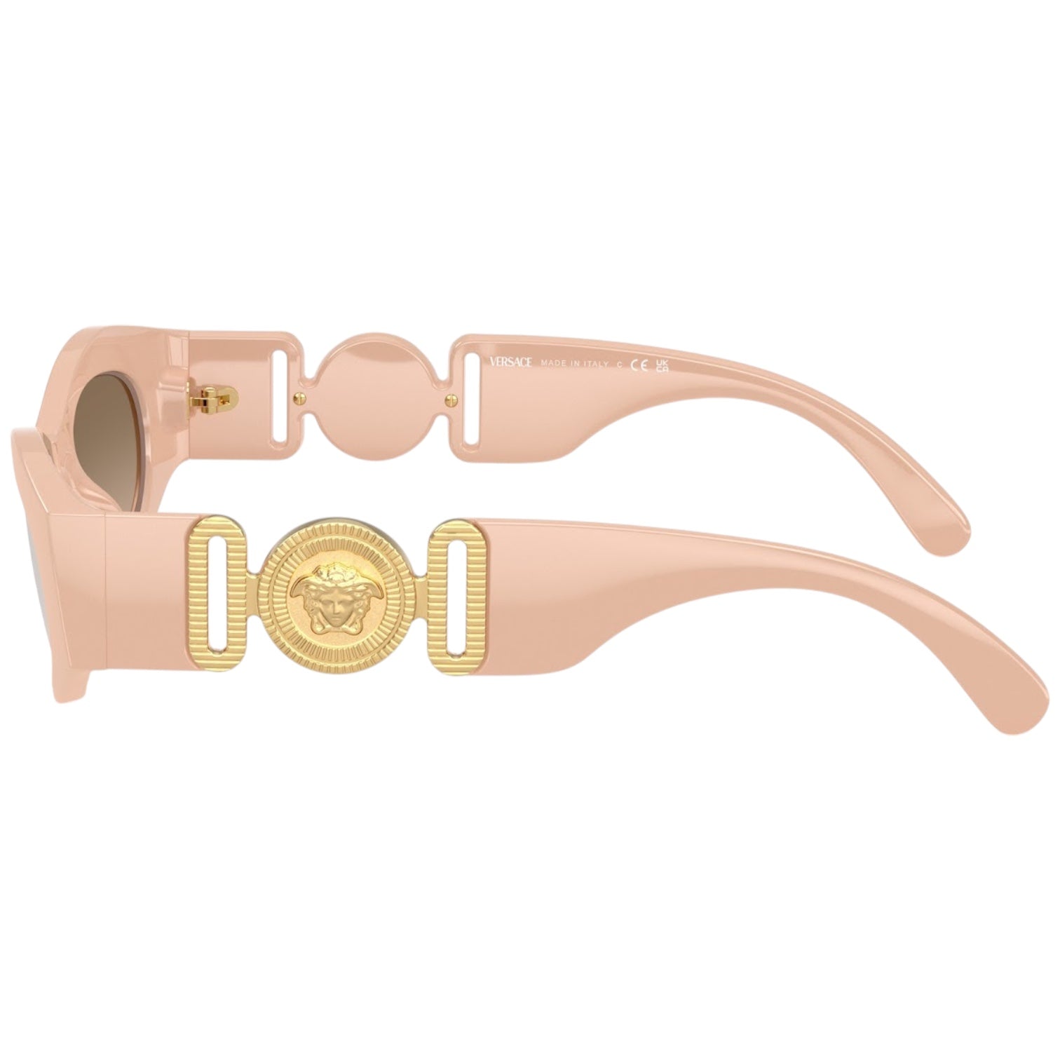 Versace VE 4480U 5494/6I – Estas gafas de sol presentan una montura de acetato en un elegante tono rosa, combinando diseño moderno y sofisticación. Las varillas están adornadas con el icónico logotipo dorado de la Medusa, añadiendo un toque de lujo distintivo. Equipadas con lentes de gradiente marrón con reflejo plateado, estas gafas son ideales para quienes buscan una declaración de estilo audaz y elegante