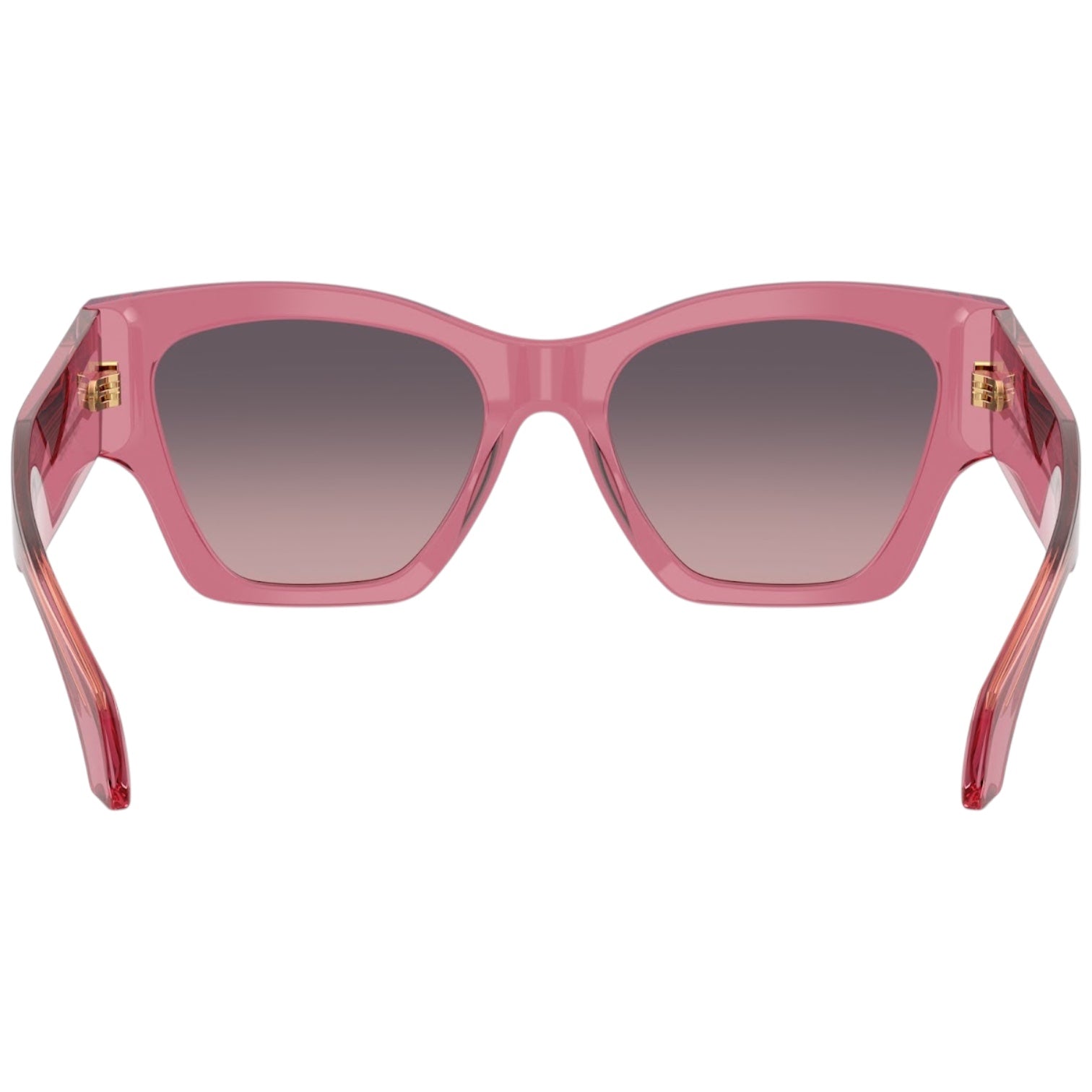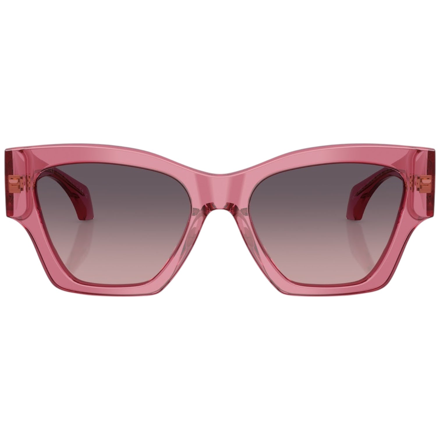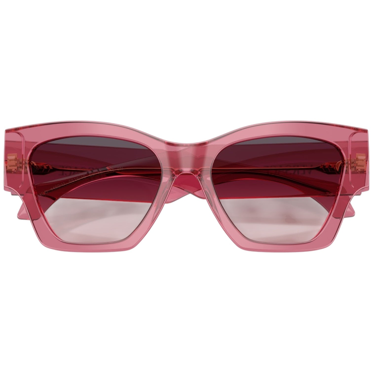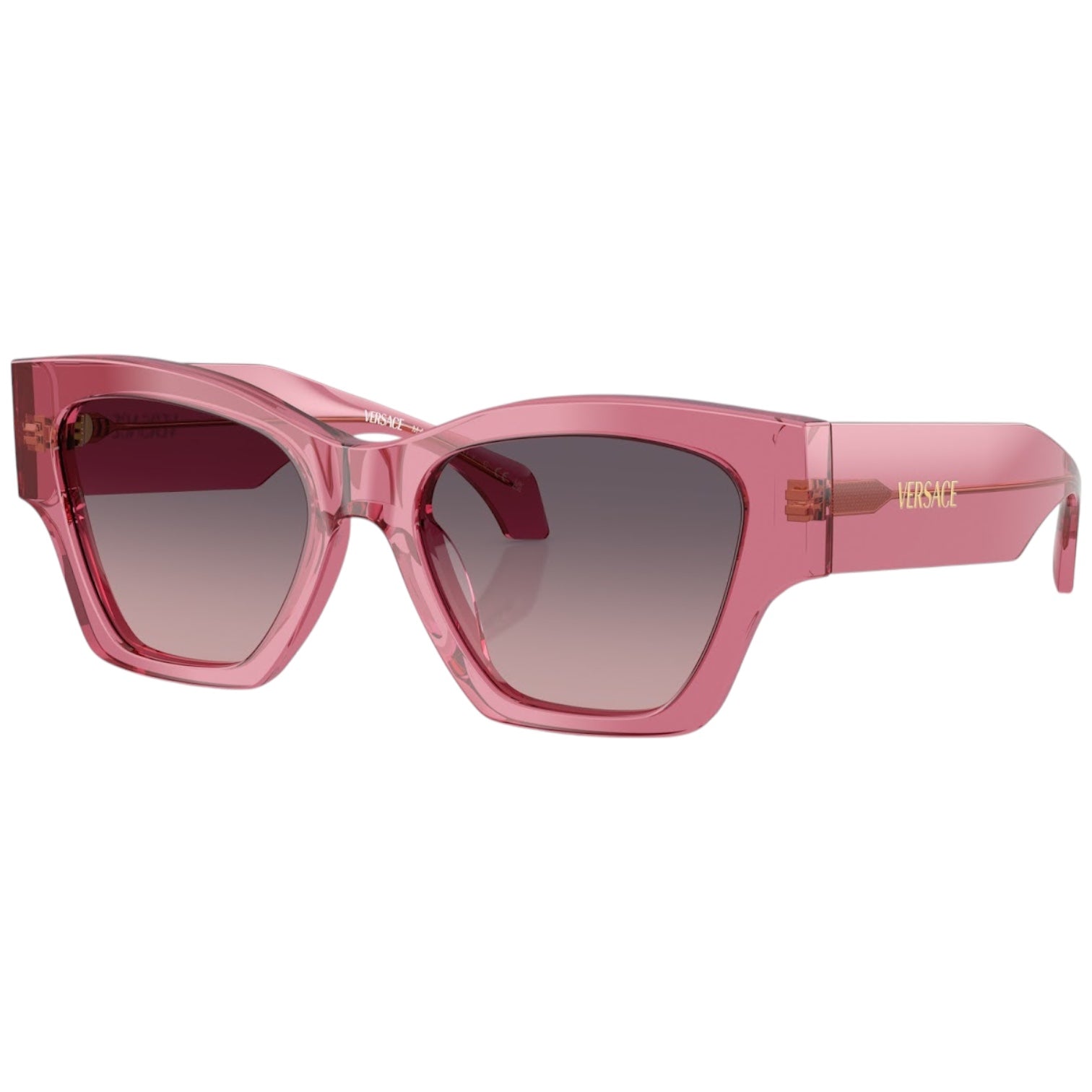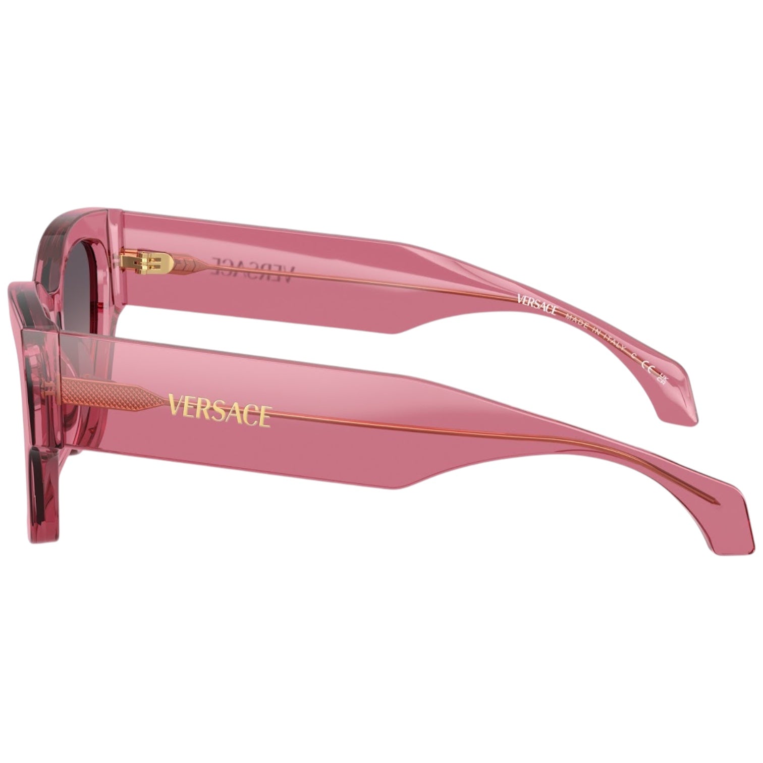 Las gafas de sol Versace VE 4492U en el color 5516/46 presentan una montura cuadrada de acetato en un tono rosa translúcido, aportando un estilo femenino y moderno. Las lentes en degradado gris ofrecen una apariencia sofisticada y versátil. Este modelo es ideal para quienes buscan un accesorio de lujo que combine diseño contemporáneo con la elegancia característica de Versace.
