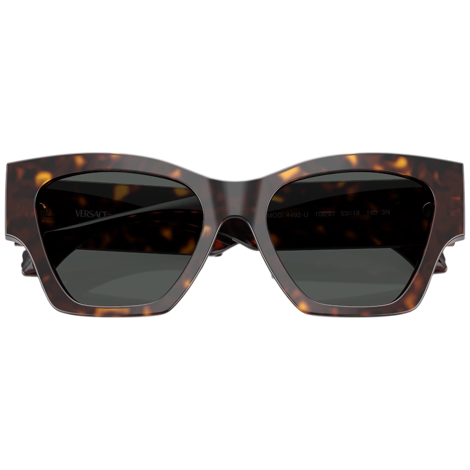 Las gafas de sol Versace VE 4492U en el color 108/87 presentan una montura cuadrada de acetato en tono habana oscuro, que aporta un estilo clásico y sofisticado. Las lentes de color gris oscuro complementan el diseño, ofreciendo una apariencia elegante y versátil. Este modelo es ideal para quienes buscan un accesorio de moda que combine lujo y funcionalidad.